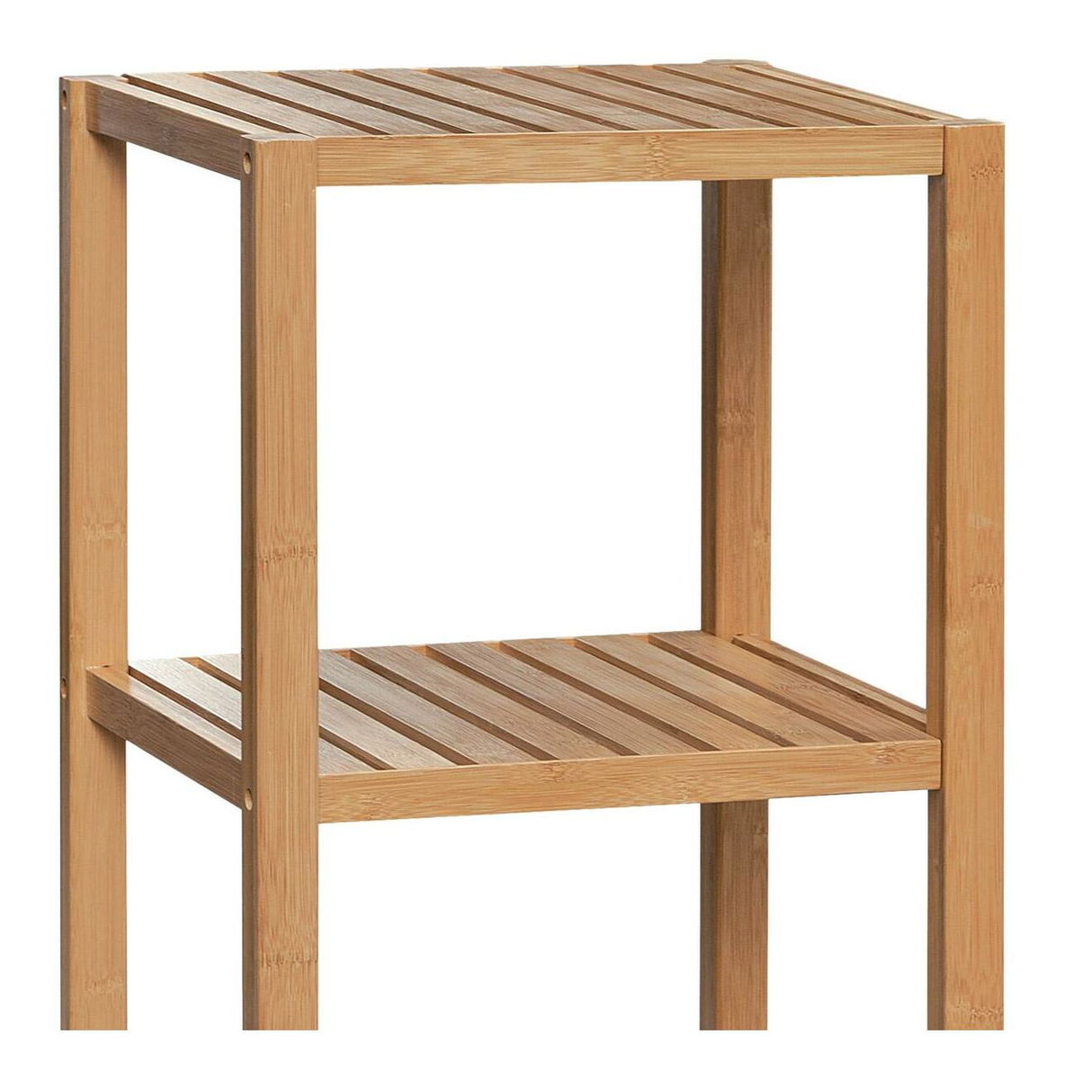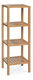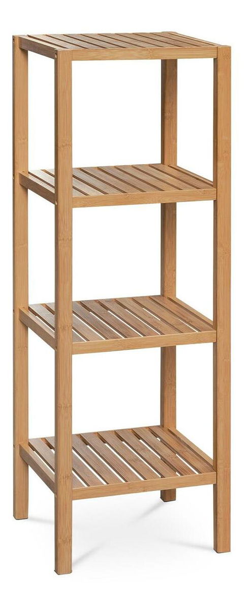 Multifunkčný štvorpolicový regál. Nosná konštrukcia a polica sú vyrobené z masívneho bambusu, lakovaného kvalitným transparentným lakom. Bambus ako taký opudzuje vodu a touto povrchovou úpravou dosahuje veľmi dobrú vodeodolnosť. Spracovaním a použitým materiálom je regál vhodný do kúpeľní, ale ideálny bude aj v ostatných miestach domácnosti. Police sú pevné roštové, prípadná vyliata voda bez problémov odtečie. Ich nosnosť je až 3 kg, celková 12 kg. Rozteč políc je 29 cm. Či už regál využijete na uloženie kozmetiky, uterákov a osušiek alebo ako stojan na kvety či dekorácie, vždy s ním budete spokojní. Záleží len na vašich nápadoch.