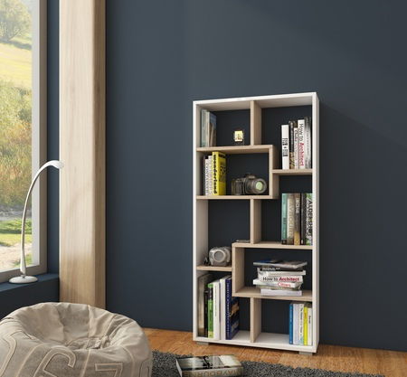 Regál Denny C úzky biela + dub sonoma svetlý