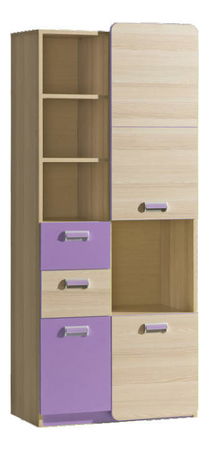 Sektorová zostava svojim dizajnom vhodná do detských a študentských izieb. Veselá kombinácia svetlej farby dreva jaseň je kombinovaná fialovou alebo zelenou farbou a rozjasní každý priestor. V sektore sa nachádza množstvo prvkov, z ktorých si hravo vyskladáte izbu podľa Vašich predstáv. Materiál použitý na výrobu je laminovaná DTD. Hrany sú ukončené ABS úpravou, ktorá zvyšuje odolnosť voči mechanickému poškodeniu, udržuje farebnú stálosť a odolnosť proti vlhkosti.