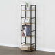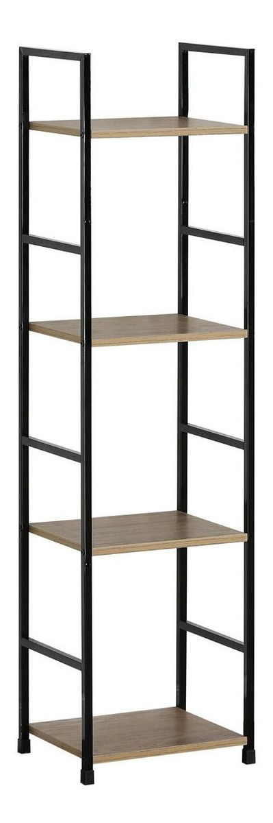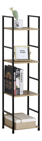 Odľahčený policový regál. Kostra vyrobená z kovových hranatých profilov čiernej farby. Na police je použitá MDF doska s povrchovou úpravou 3D fólie v textúre duba. Balenie obsahuje sadu umožňujúcu pripevnenie k stene.