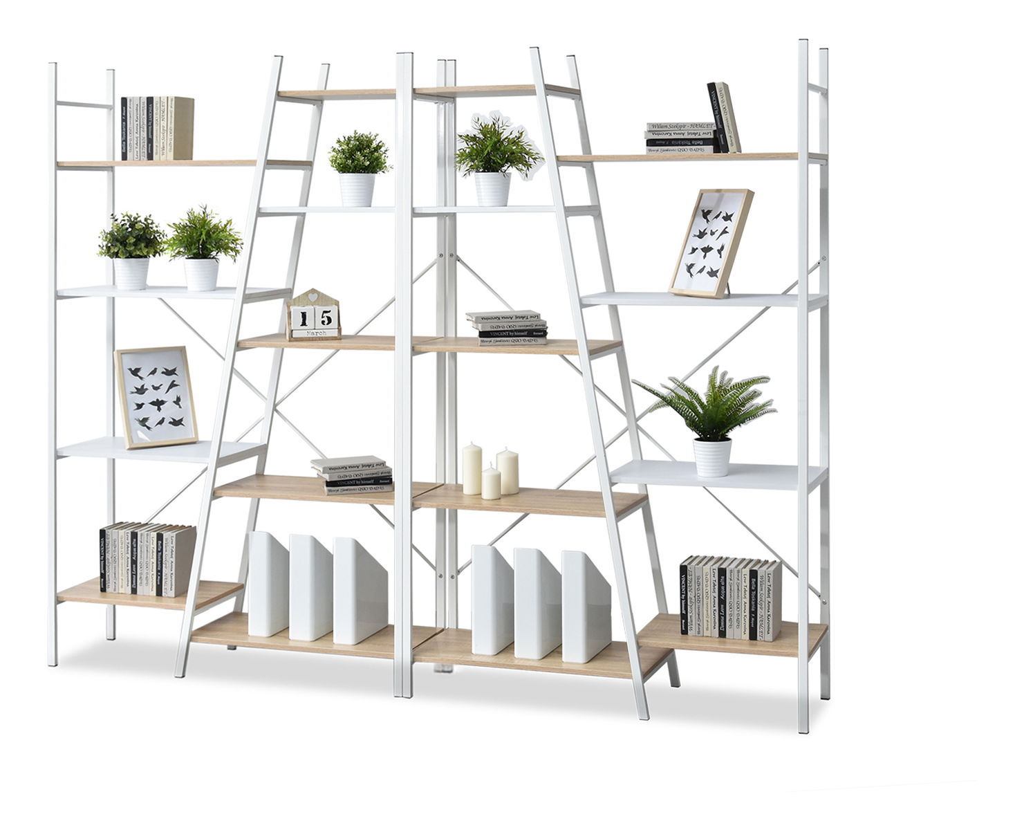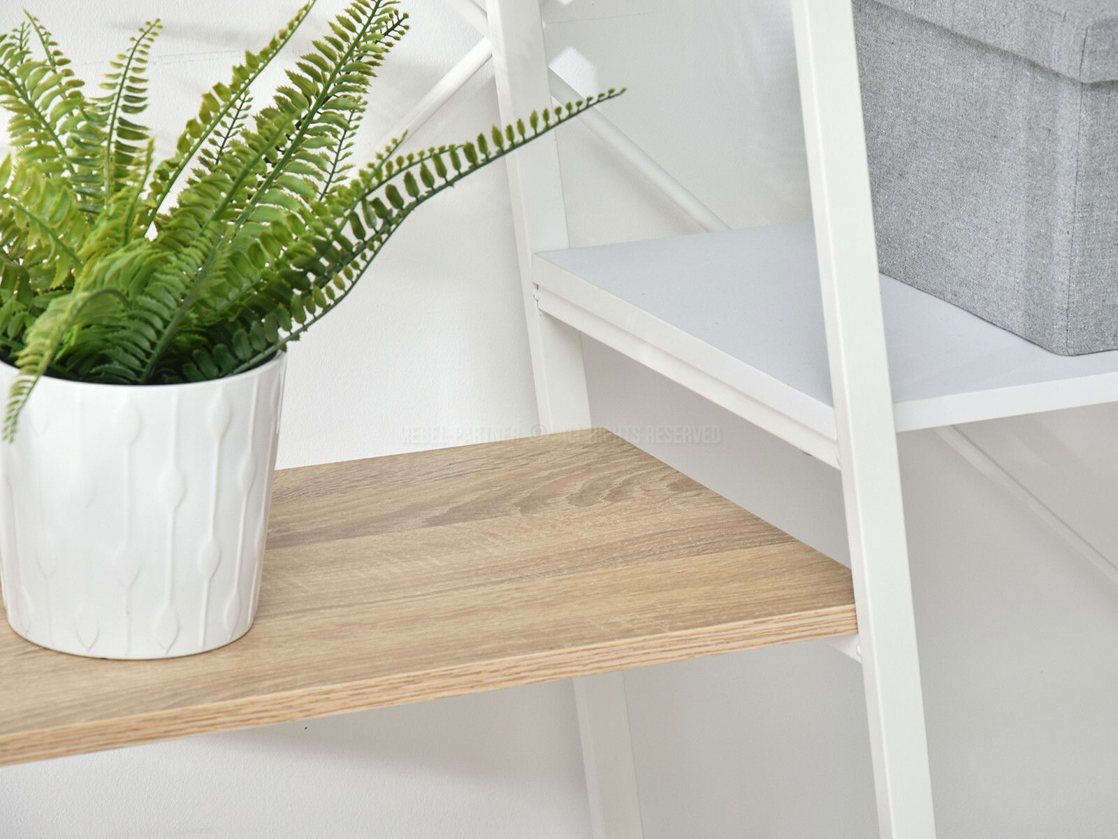 Gecon Reg Zes v kombinácii sonoma a bielej farby je ideálnym doplnkom do každého interiéru, ktorý vyžaduje praktickosť aj štýlový vzhľad. Vďaka pevnej kovovej konštrukcii a viacerým odkladacím plochám ponúka dostatok miesta na usporiadanie kníh, dekorácií alebo kancelárskych potrieb. Pre dokonalé doplnenie obývacej izby môžete zvoliť aj moderné škandinávske obývacie steny, ktoré zvýraznia štýl vášho priestoru.