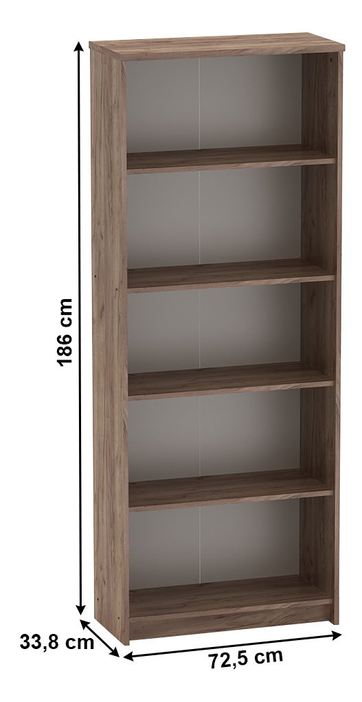 Regál Hansa 2 NEW 04 (kraft dunkel + biela) s výškou 186 cm, šírkou 72,5 cm a hĺbkou 33,8 cm je ideálnym doplnkom do modernej kancelárie alebo pracovne. Vďaka minimalistickému dizajnu a bielo-kraft dunkel farbám sa hodí aj do detskej izby. Regál ponúka praktický otvorený úložný priestor na šanóny, knihy alebo krabice. Má štyri police, čím vzniká až päť odkladacích plôch. Regál je dodávaný so spodným soklom, ktorý ho stabilizuje a zvýši jeho pevnosť. S Regálom Hansa 2 NEW 04 (kraft dunkel + biela) získate štýlové riešenie pre vaše úložné potreby.
