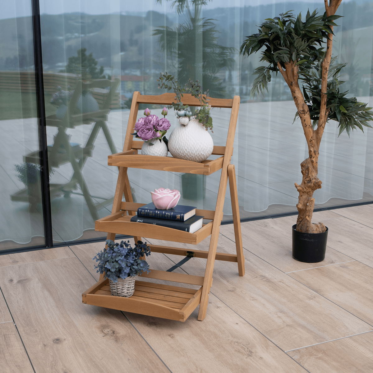 Regál Ilaro je vyrobený z masívneho dreva v prevedení jelša. Ponúka úložný priestor v podobe troch políc, ktoré majú vyvýšené predné čelá, aby z nich nič nevypadlo. Regál má všestranné využitie, ktoré si určite budete pochvaľovať. Krásne ho doplnia kvety, fotografie, ale aj rôzne doplnky, ktoré naň umiestnite. Svoje uplatnenie nájde v kuchyni, obývačke či akejkoľvek inej miestnosti. A čo je veľké plus, regál môžete pokojne použiť aj v exteriéri. Jeho spracovanie z masívneho dreva ho predurčuje, aby zvládol rôzne výkyvy počasia. Pekne ukáže na záhrade, terase alebo si ním ozdobte altánok. Má nielen dekoratívnu, ale aj praktickú hodnotu. Na dekorácie, alebo na suroviny a pochutiny ku grilovaniu.