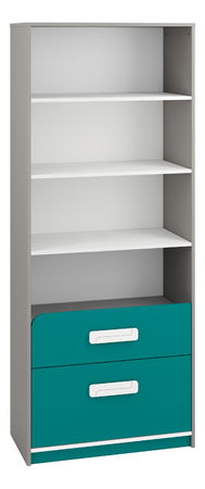 Praktický regál, ktorý je rozdelený na dve časti. Horná je otvorená s tromi policami a dolná časť zásuvkami.