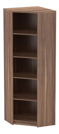 Moderný rohový regál Jove, ktorý je vhodný do kancelárie alebo pracovne. Má päť priestranných poličiek. Dodáva sa v prevedení slivka.