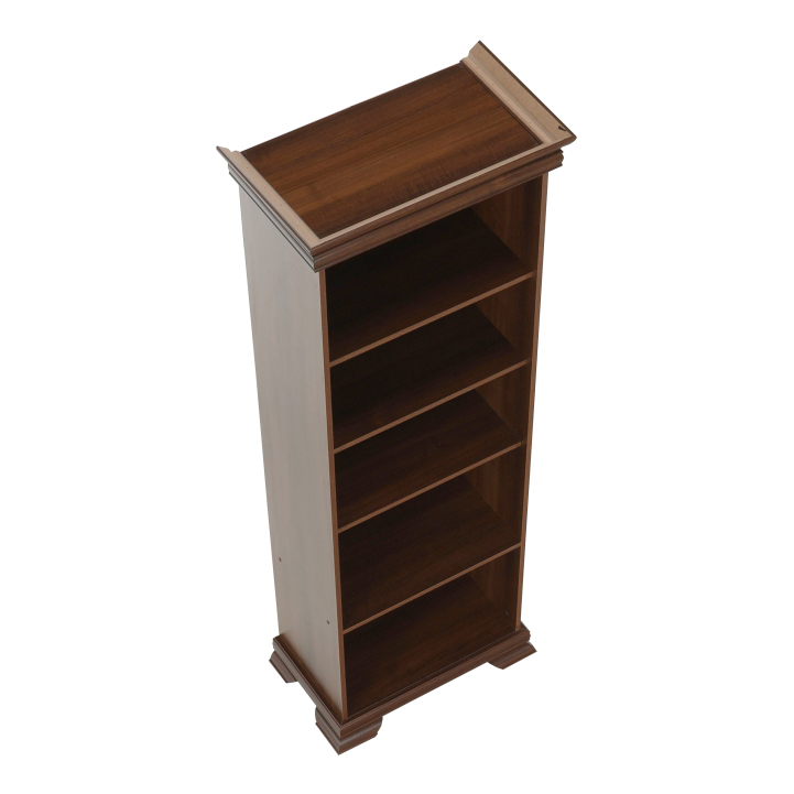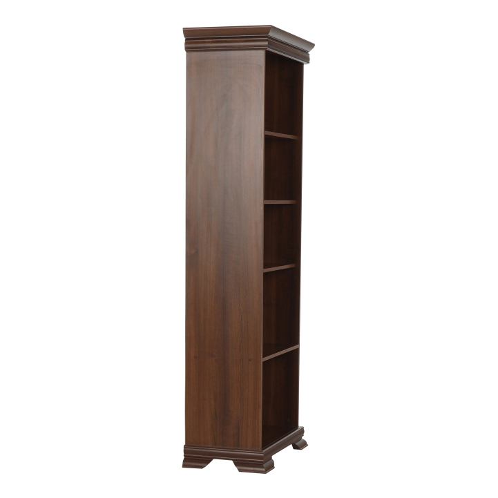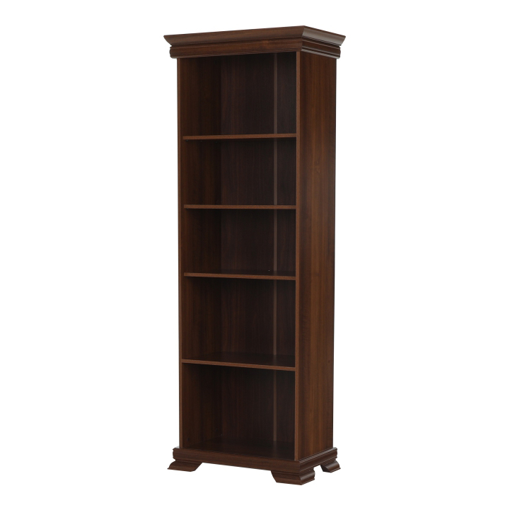 Regál Kraz KR1 výška 193 cm hĺbka 40 cm Samoa king je vysoký otvorený regál rustikálneho štýlu so štyrmi policami. Tento regál je ideálny pre všetkých, ktorí obľubujú rustikálny štýl a chcú si takto zariadiť svoj domov. Regál má ozdobné vyrezávané nožičky a lišty a je dodávaný vo farebnom prevedení Samoa king. Sektorová modelová rada nábytku Kraz je vhodná pre všetkých, ktorí chcú zariadiť svoju domácnosť v rustikálnom štýle a majú radi tradičnejší vzhľad nábytku. Nábytok Kraz je vyrobený z laminovanej DTD a MDF, s hrúbkou korpusu 15 mm, vrchnej a dolnej dosky 22 mm. Regál má výšku 193 cm, šírku 68 cm a hĺbku 40 cm. Výška spodného priestoru od podlahy je 10,5 cm.
