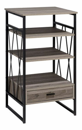 Elegantné a zároveň zaujímavé riešenie úložného priestoru, ktoré je ideálne do každej miestnosti. Tento unikátny kúsok ponúka množstvo úložných možností s niekoľkými policami a priestrannou zásuvkou. Elegantný, ale stabilný kovový rám s výraznou čiernou povrchovou úpravou zvýrazňuje industriálny dizajn tohto kusu nábytku.