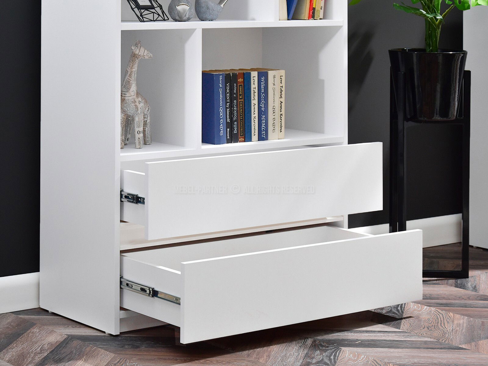 so zásuvkami, výsuvmi na guľôčkové ložiská, s otvorenými policami