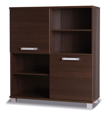 Atraktívny a elegantný nábytok, ktorý jedinečným spôsobom vyplní Váš interiér. Prvky z tohto modelového radu vďaka modernému dizajnu a farbe dreva spravia z Vášho bytu jedinečné miesto. Nábytok je vyrobený z laminovanej dosky, ktorá je chránená 2mm ABS hranou. Hrúbka dosky korpusu je 22 mm a frontov 16 mm. Pri vitrínach je použitá strieborná MDF doska. V posteliach je namiesto roštu s lamelami použitá doska.