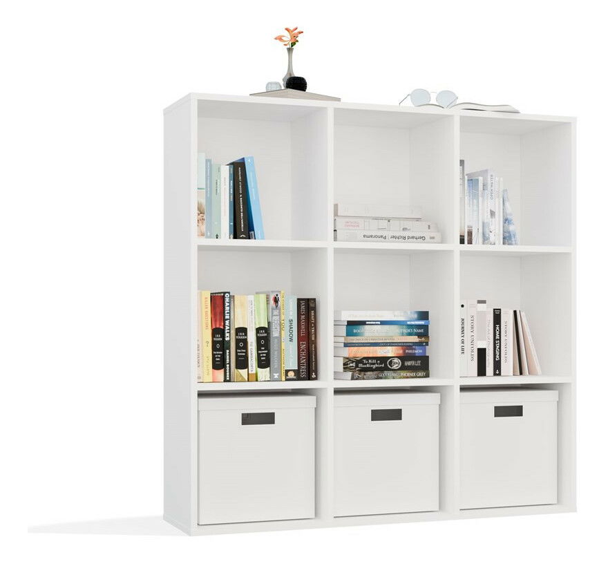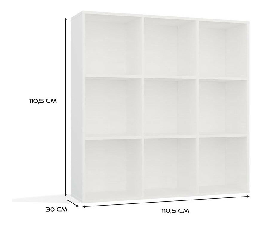 Regál Metros 5 v elegantnej bielej farbe je ideálnym riešením pre moderné interiéry, ako sú obývacie izby, kancelárie alebo detské izby. S deviatimi priestrannými komorami ponúka dostatok miesta na knihy, hračky či dekorácie, pričom jeho stabilná konštrukcia z laminovanej drevotriesky a zadný panel z HDF zabezpečujú nielen estetiku, ale aj vysokú stabilitu. Tento regál sa jednoducho montuje a jeho minimalistický dizajn umožňuje bezproblémové kombinovanie s ďalším nábytkom. Metros 5 je praktickým a štýlovým doplnkom do každého domova.
