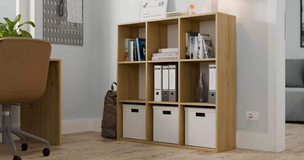 Regál Metros 5 je moderným a praktickým riešením pre váš domov či kanceláriu. S deviatimi priestrannými komorami je ideálny na uskladnenie kníh, hračiek alebo dekorácií. Jeho stabilná konštrukcia z laminovanej drevotriesky s hrúbkou 16 mm a zadný panel z HDF zaručujú nielen estetický vzhľad, ale aj vyššiu stabilitu. Farba dub artisan dodáva regálu elegantný a nadčasový vzhľad, ktorý sa ľahko kombinuje s inými kusmi nábytku. Tento regál je skvelou voľbou pre každého, kto hľadá funkčný a štýlový nábytok.
