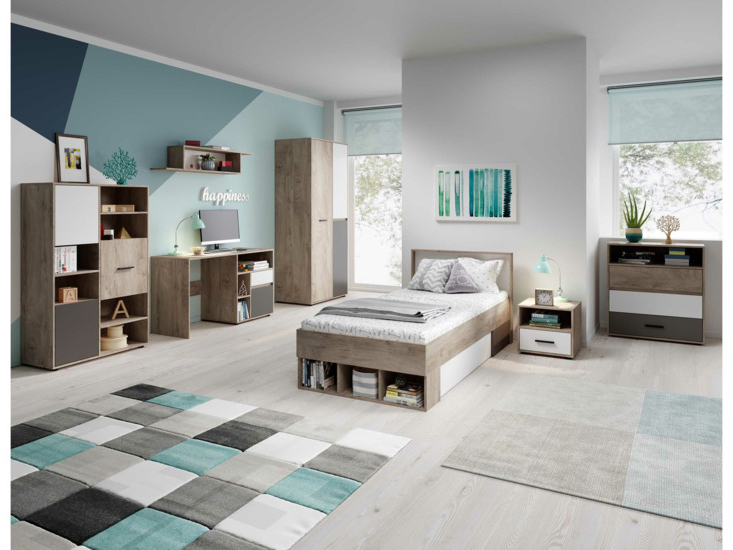 Regál Mitiano M3 (dub engrein + grafit + biela)