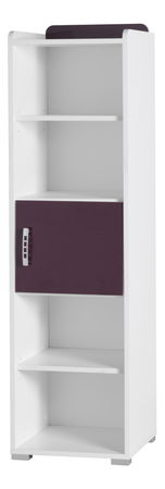 Praktický regál vhodný na knižky, učebnice, hračky, či iné doplnky. Má štyri otvorené poličky a jedny dvierka. Regál má príťažlivý moderný dizajn, ktorý vytvorí z každej študentskej izby útulné miesto. Farebné prevedenie regálu je biela farba v kombinácii s fialovými prvkami.