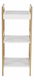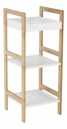 Regál Nodin výška 73 cm hĺbka 29 cm Prírodná + Biela je praktickým riešením pre usporiadanie vecí v kúpeľni. S trojicou poličiek poskytuje dostatok úložného priestoru pre uteráky, sprchové gély, fén na vlasy a kozmetické produkty. Vyrobený je z kvalitných materiálov - bieleho MDF a lakovaného bambusu - v modernom prevedení s kombináciou bambusu a bielej farby. Regál Nodin nie je len praktický, ale aj vkusný kúsok nábytku, ktorý sa hodí do každej kúpeľne. Jeho rozmery sú 30x29x73 cm a dodáva sa v demonte. Nechajte Nodin usporiadať vašu kúpeľňu, aby si každý v pokoji nájde svoju kefu aj počas rušného rána.