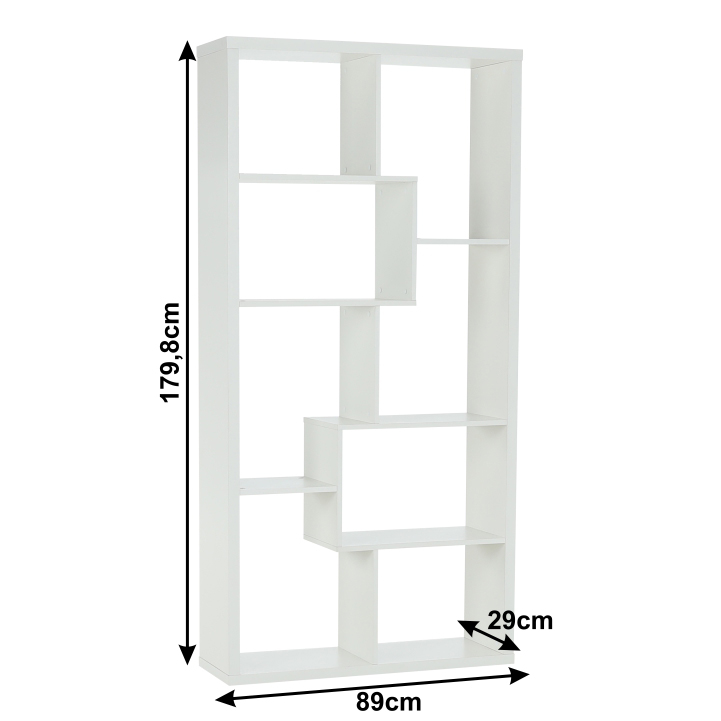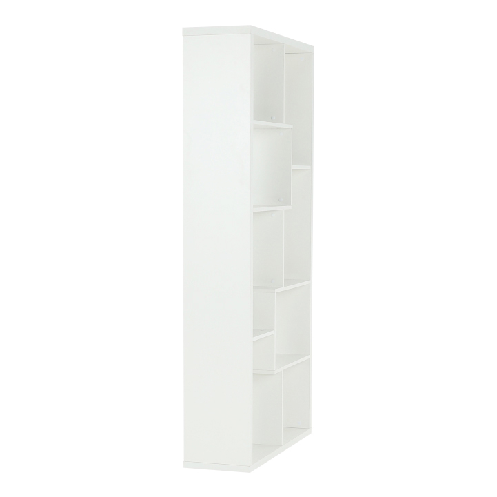 Tento viacúčelový regál je vyrobený v dvoch bežných farebných prevedeniach a vďaka tomu je ľahko kombinovateľný s ostatným nábytkom. Má netradičný dizajn a ponúka množstvo odkladacieho priestoru. Korpus je hrubý 34 mm a vyobrazený kus je v bielom farebnom prevedení. Regál vnesie do miestnosti nadčasovosť, prehľadnosť a váš domov bude žiariť harmóniou.