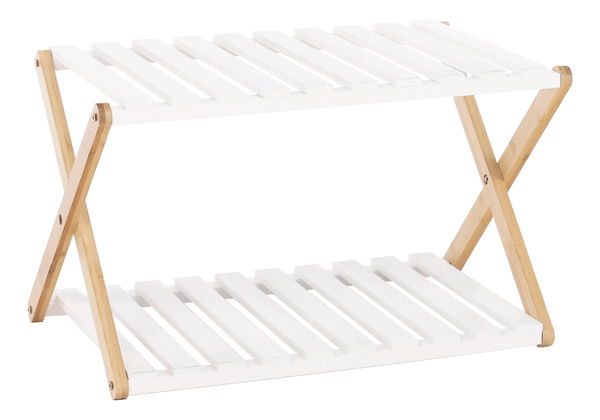 Ak potrebujete rozšíriť váš úložný priestor či efektívne a vkusne vyplniť prázdny priestor v domácnosti, vyberte si 2-policový regál Petria. Poličky sú vyrobené z MDF v jemnej bielej farbe. Konštrukcia je vyrobená z lakovaného bambusu v prírodnom prevedení.