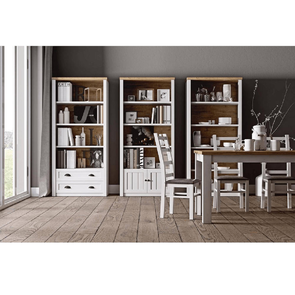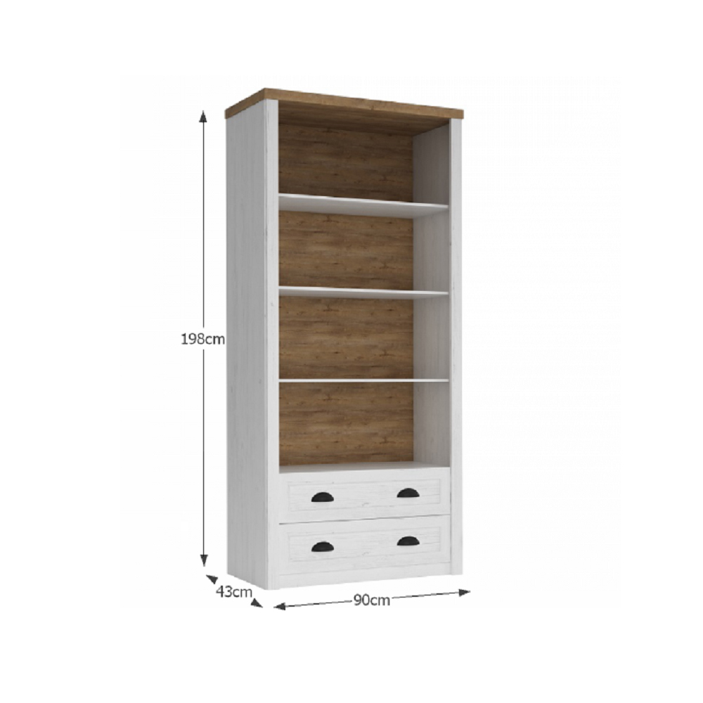 Regál Provense R2 je skvelý doplnok pre Vašu domácnosť, s výškou 198 cm a hĺbkou 43 cm. Vyrobený je z kvalitného materiálu - laminovanej DTD, s hrúbkou materiálu korpusu 15mm a vrchnej dosky 36mm. Regál sa skladá z troch políc, ktoré Vám poskytnú štyri úložné miesta. V spodnej časti regálu sa nachádzajú dve zásuvky, ktoré Vám poskytnú extra úložný priestor. Regál Provense R2 vytvára krásnu atmosféru a výborne zapadne do vašej obývacej izby alebo pracovne. Nechýba mu typický provensálsky štýl, ktorý určite oživí interiér Vašej domácnosti.
