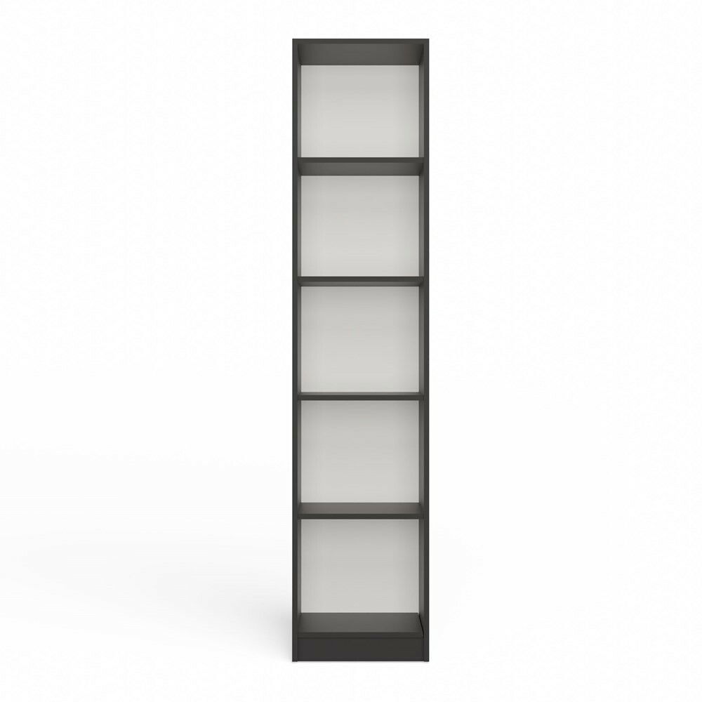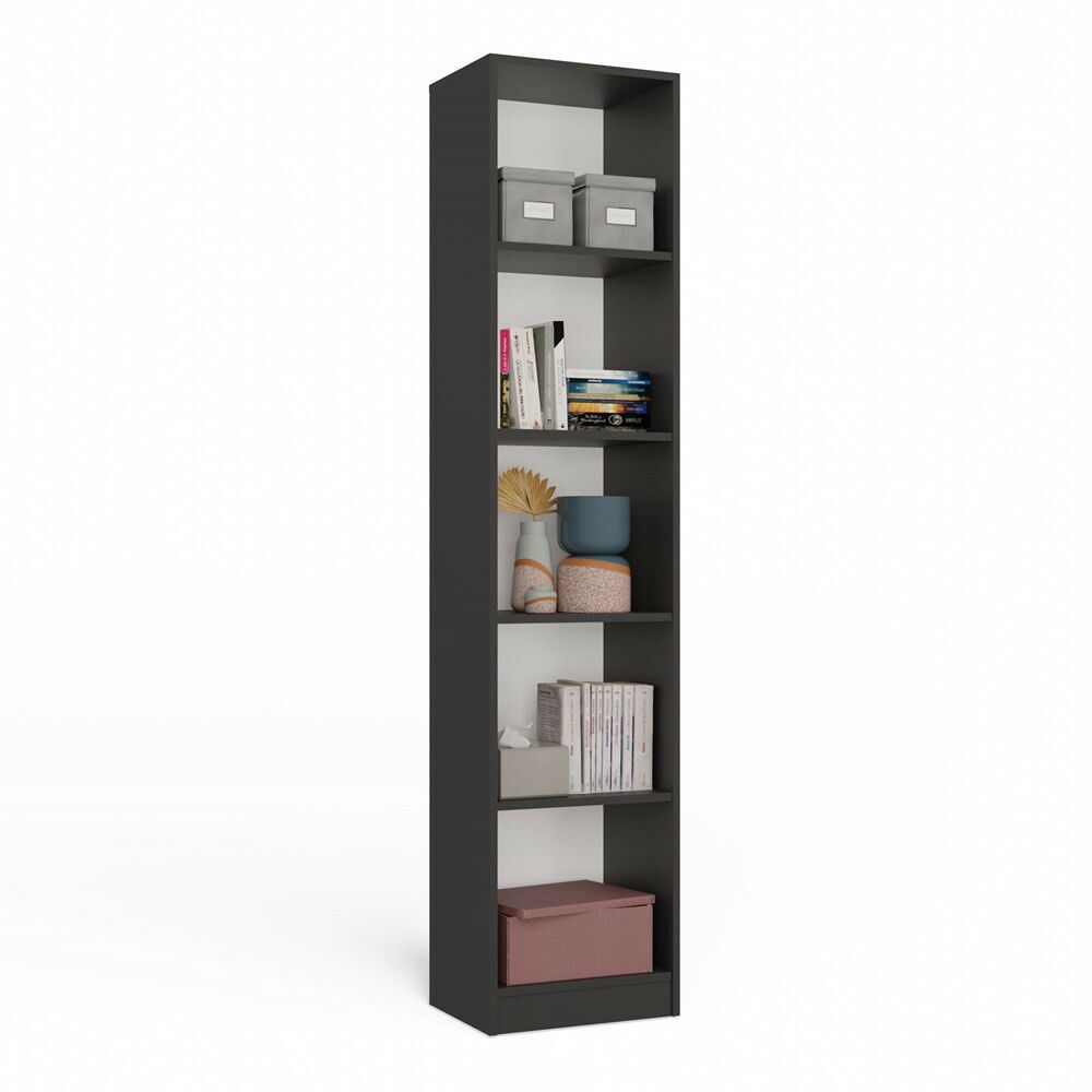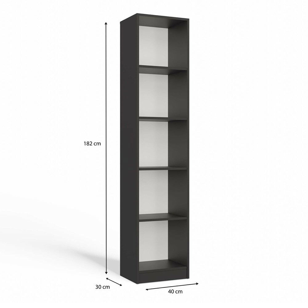 ZobraziťRegál Refarencios 2 v elegantnej antracitovej farbe je ideálnym riešením pre moderné interiéry, kde kombinuje štýlový dizajn s praktickou funkčnosťou. S piatimi priestrannými poličkami ponúka dostatok miesta na knihy, dokumenty či dekorácie, pričom jeho minimalistická forma sa hodí do rôznych priestorov, ako sú kancelárie, obývacie izby alebo detské izby. Vyrobený z kvalitnej laminovanej drevotriesky, regál je odolný voči poškriabaniu a ľahko sa udržuje v čistote, čo z neho robí skvelý doplnok do každého domova.