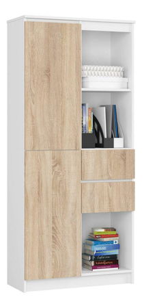Regál Rizwan (biela + dub sonoma) s výškou 180 cm, šírkou 80 cm a hĺbkou 35 cm je skvelým doplnkom pre Vašu domácnosť. Tento regál je vyrobený z kvalitného materiálu, ktorý zaručuje jeho odolnosť a dlhú životnosť. Vďaka svojmu dizajnu v kombinácii biela + dub sonoma sa dokonale hodí do rôznych interiérových štýlov. S jeho priestorom na policiach a praktickými rohmi Vám poskytuje dostatok miesta na usporiadanie a organizáciu Vášho obľúbeného čítania, dekorácií alebo iných predmetov. Regál Rizwan je ideálnym nábytkom pre tých, ktorí hľadajú vkusnú a funkčnú úložnú riešenie.