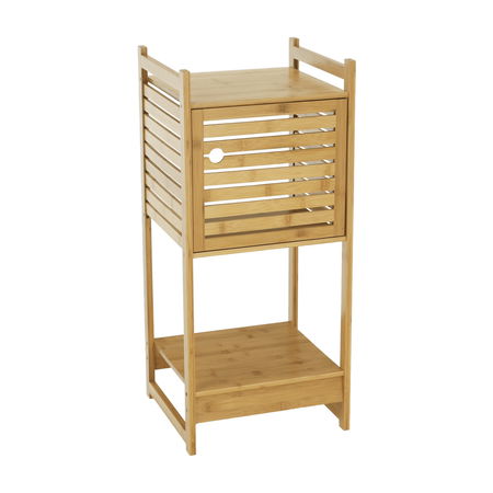 Zariaďujete si novú kúpeľňu a potrebujete využiť každý centimeter? Je vaším snom, aby sa niesla vo vzdušnom, ľahkom a jedinečnom štýle? Predstavujeme vám sektorovú zostavu Saliona. Ponúka množstvo komponentov na vytvorenie originálnej kúpelne. Vyrobená z lakovaného bambusu v prírodnej farbe. Jednoducho kombinovateľné prvky vytvoria vo vašej kúpeľni neopísateľnú atmosféru a zanechajú dokonalý dojem. Jedným z komponentov je viacúčelový regál Saliona Typ 1. Ponúka úložný priestor v podobe troch políc, z ktorých je jedna polica ukrytá za dvierkami.