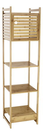 Zariaďujete si novú kúpeľňu a potrebujete využiť každý centimeter? Je vaším snom, aby sa niesla vo vzdušnom, ľahkom a jedinečnom štýle? Predstavujeme vám sektorovú zostavu Saliona. Ponúka množstvo komponentov na vytvorenie originálnej kúpelne. Vyrobená z lakovaného bambusu v prírodnej farbe. Jednoducho kombinovateľné prvky vytvoria vo vašej kúpeľni neopísateľnú atmosféru a zanechajú dokonalý dojem. Jedným z komponentov je viacúčelový regál Saliona Typ 3. Ponúka úložný priestor v podobe piatich políc, z ktorých je jedna polica ukrytá za dvierkami.