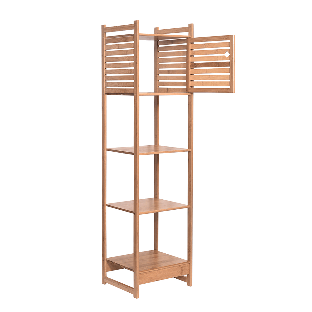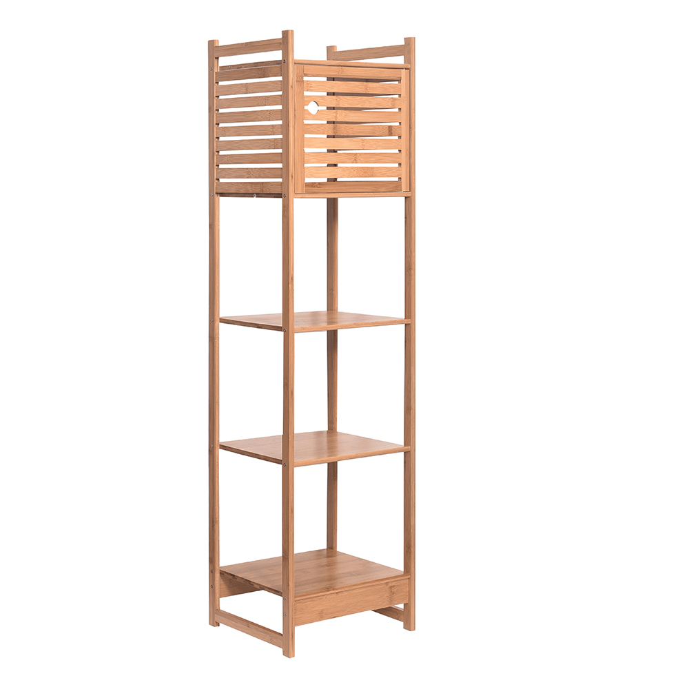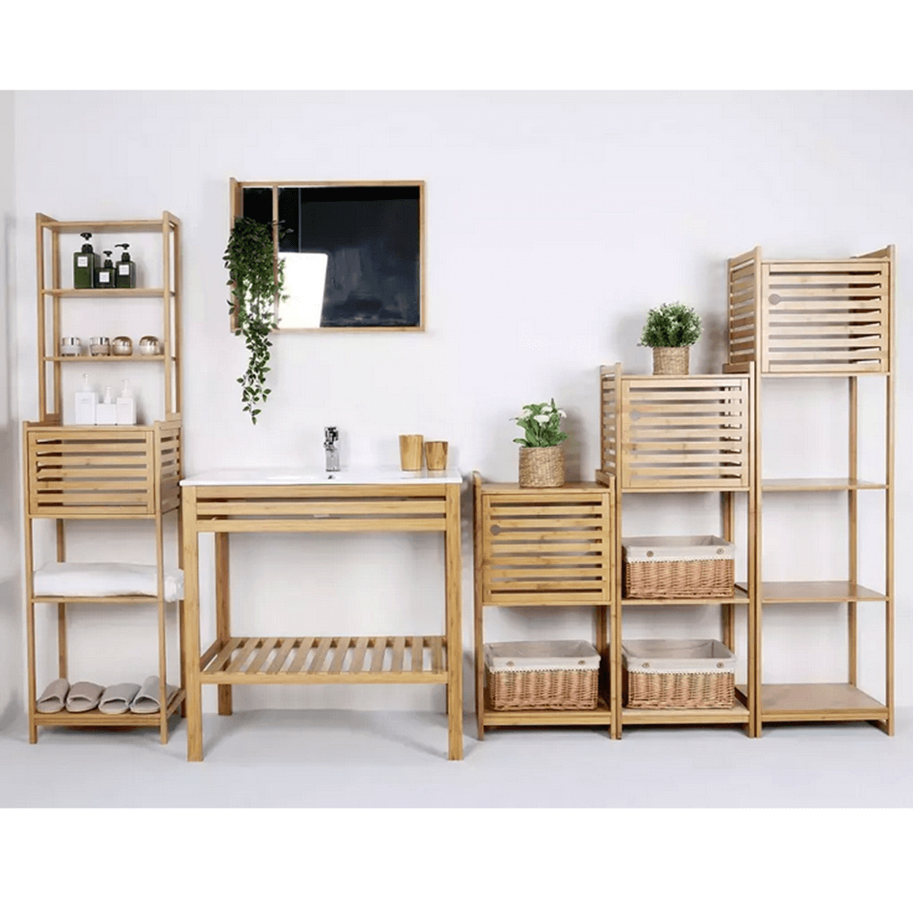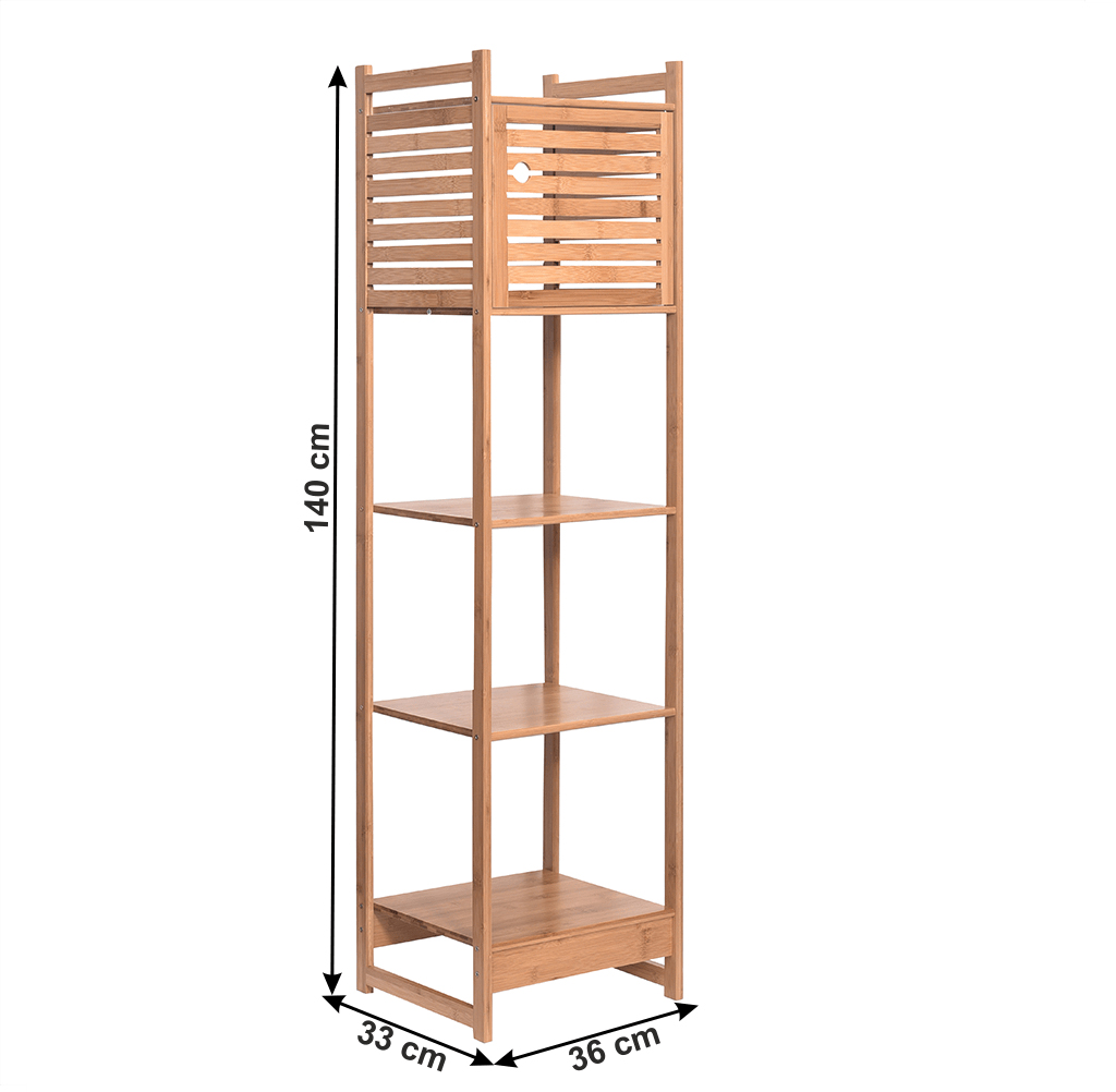 Zariaďujete si novú kúpeľňu a potrebujete využiť každý centimeter? Je vaším snom, aby sa niesla vo vzdušnom, ľahkom a jedinečnom štýle? Predstavujeme vám sektorovú zostavu Saliona. Ponúka množstvo komponentov na vytvorenie originálnej kúpelne. Vyrobená z lakovaného bambusu v prírodnej farbe. Jednoducho kombinovateľné prvky vytvoria vo vašej kúpeľni neopísateľnú atmosféru a zanechajú dokonalý dojem. Jedným z komponentov je viacúčelový regál Saliona Typ 3. Ponúka úložný priestor v podobe piatich políc, z ktorých je jedna polica ukrytá za dvierkami.