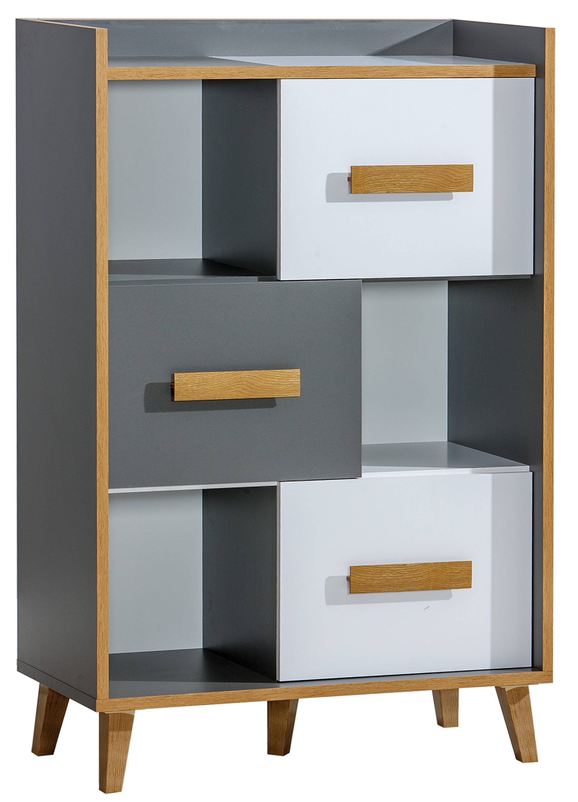Regál typ W5 Wendy (antracitová + biela + dub wotan)