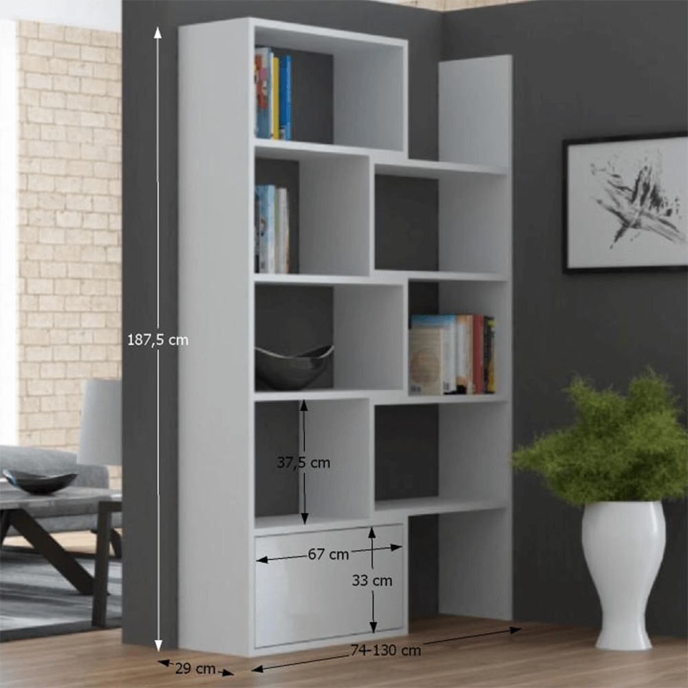 Regál Unwest (biela + biela) s výškou 187,5 cm a hĺbkou 29 cm je ideálnym riešením pre vašu domácnosť alebo kanceláriu. Jeho jednoduchý, no elegantný dizajn v bielom prevedení dodáva interiéru moderný vzhľad. Regál je vyrobený z kvalitného DTD laminátu a disponuje hrúbkou materiálu korpusu 22/16 mm, čo zaručuje jeho trvanlivosť a pevnosť. Ďalšou výhodou je možnosť nastavenia šírky regálu od 74 do 130 cm, čo umožňuje prispôsobenie regálu vašim potrebám. Regál sa dodáva v demonte a jeho zostavenie je jednoduché. Regál Unwest je praktický a trendy doplnok do vašej domácnosti alebo kancelárie, ktorý vám poskytne dostatok miesta na uskladnenie vašich vecí.
