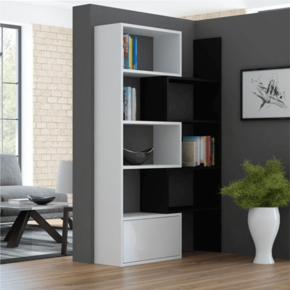 Regál Unwest (biela + čierna) je praktický a moderný nábytok pre vaše domácnosti. Farebné prevedenie v bielo-čiernom dizajne dodáva vašim priestorom nový šmrnc. Je vyrobený z kvalitného materiálu - DTD laminovaná, ktorý zaisťuje trvanlivosť a pevnosť regálu. S rozmermi (ŠxHxV) 74-130x29x187,5 cm a hrúbkou materiálu korpusu 22/16 mm, tento regál ponúka dostatok úložného priestoru na vaše veci. Regál je dodávaný v demonte, čo zaisťuje jednoduchú montáž. Regál Unwest (biela + čierna) je skvelým doplnkom pre vašu domácnosť, ktorý vám ponúka funkcionalitu a modernú estetiku.