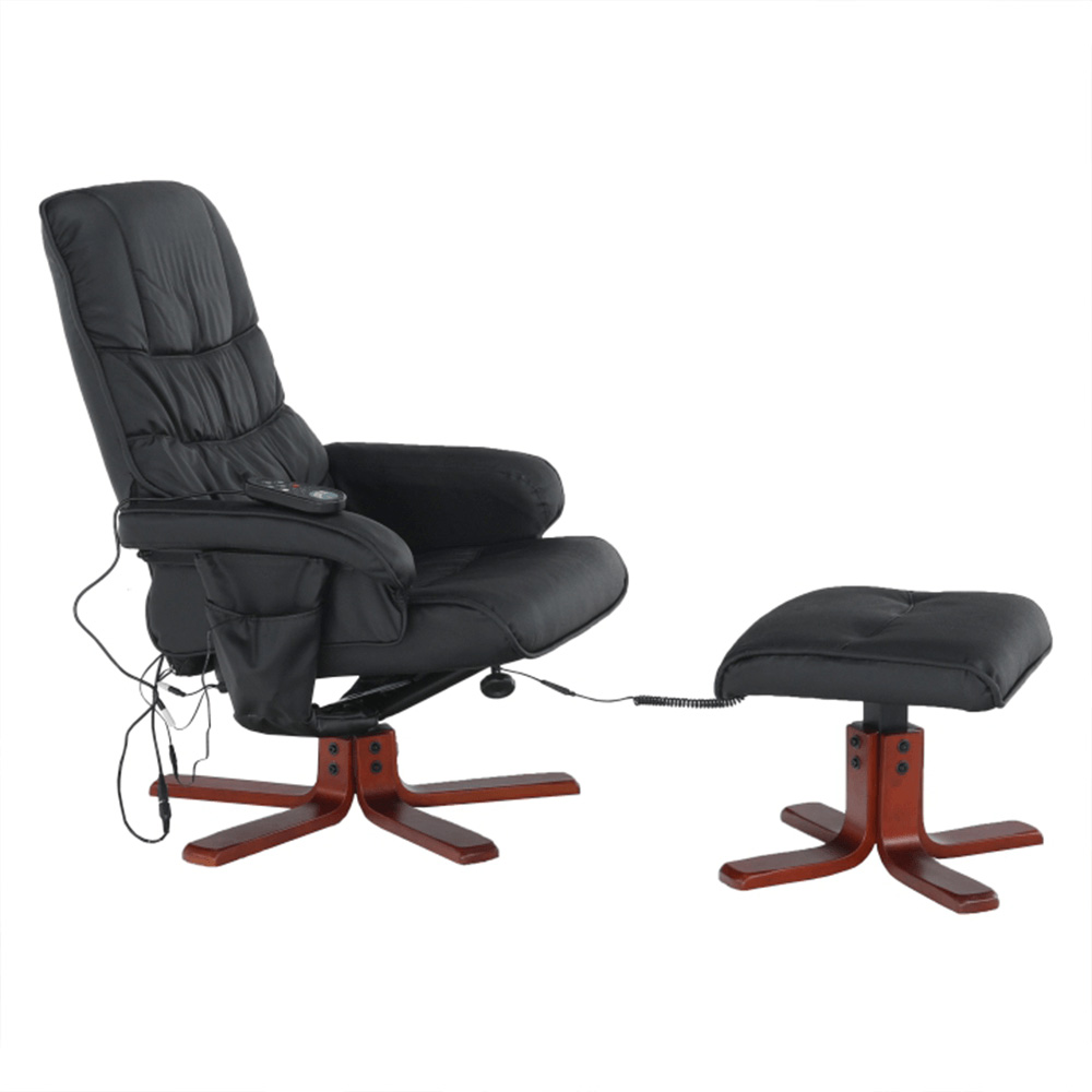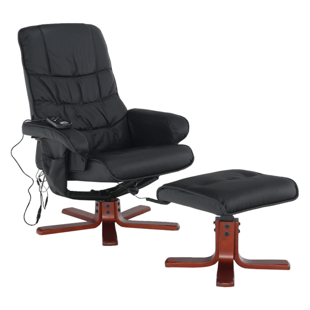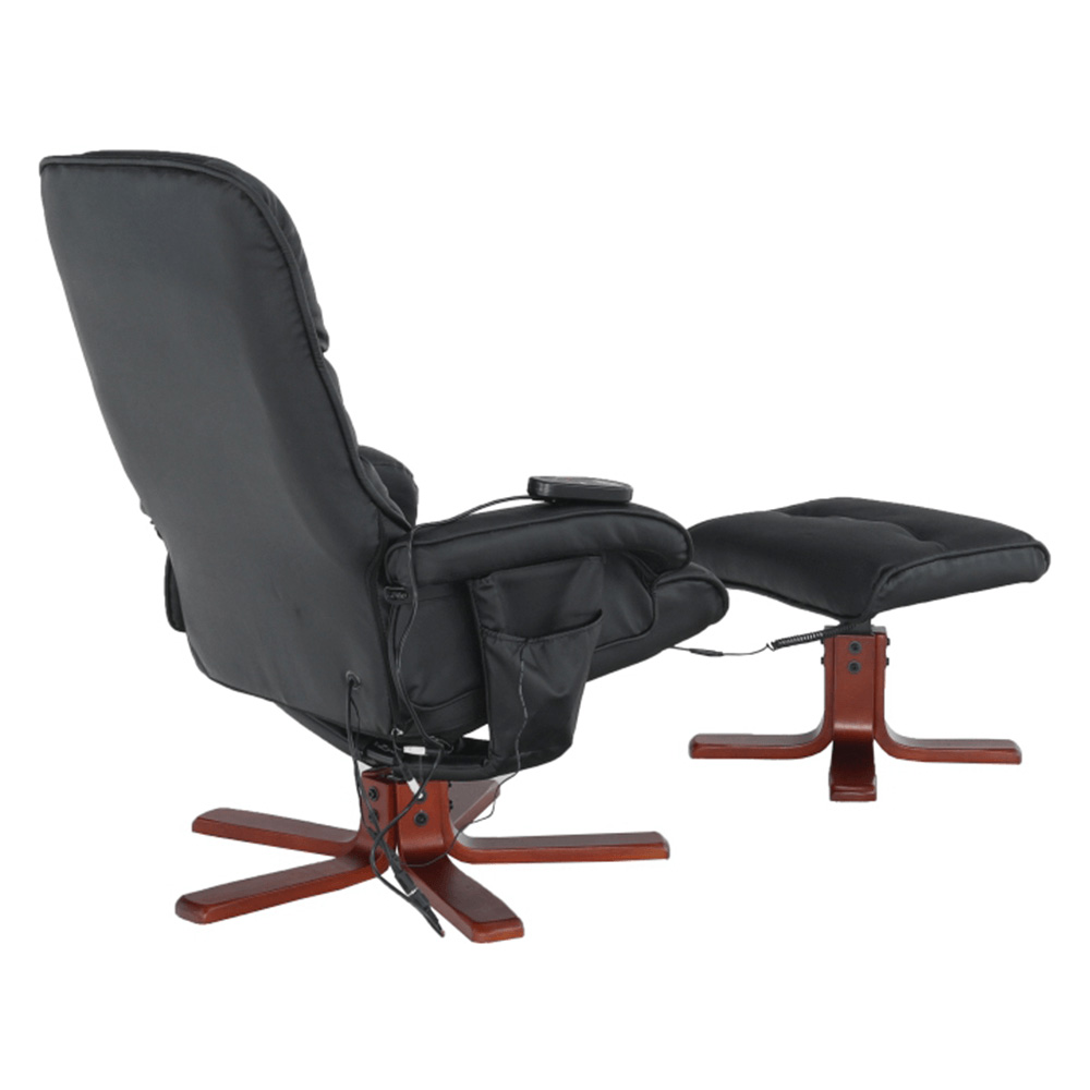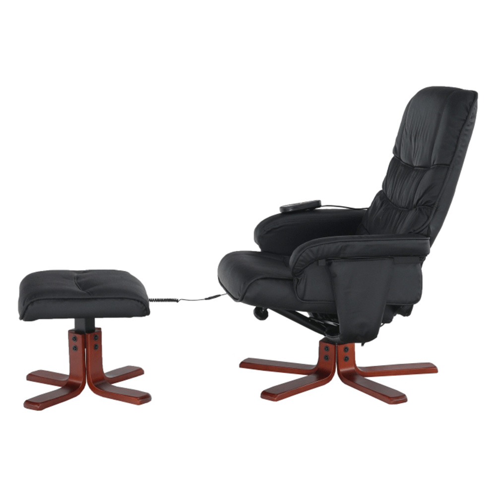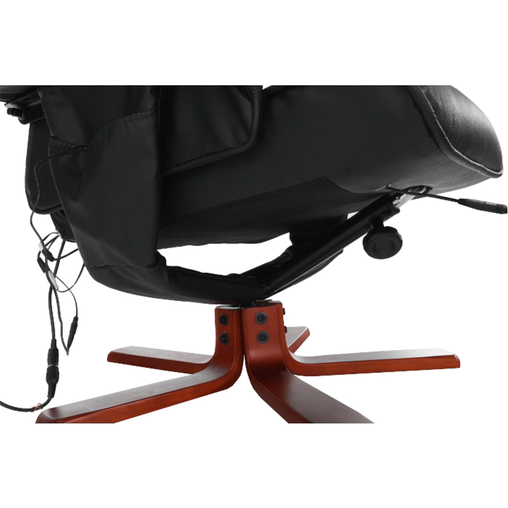 Nedostatok energie, stres, únava, bolesti chrbta, krčnej chrbtice alebo nôh potrápia občas každého. Relaxačné otáčavé kreslo Aurelia má mechanické polohovanie a nastaviteľnú opierku chrbta. Pomocou páky pod sedadlom sklopíte operadlo do pohodlnejšej polohy. Pri nastavení polohy operadla sa sedadlo synchronizovane posunie dopredu, čím sa hĺbka sedacej časti zväčší zo 82 cm na komfortných 115 cm. Dajte sa rozmaznávať masážou až v ôsmich masážnych bodoch. Výhodou kresla je aj jeho vysoká nosnosť. Vyrobené je z kvalitných materiálov čierna split koža a čierna ekokoža. Drevená konštrukcia je vo farebnom odtieni čerešňa. Zamilujte sa do relaxu a úslužného maséra vo forme relaxačného kresla Aurelia.