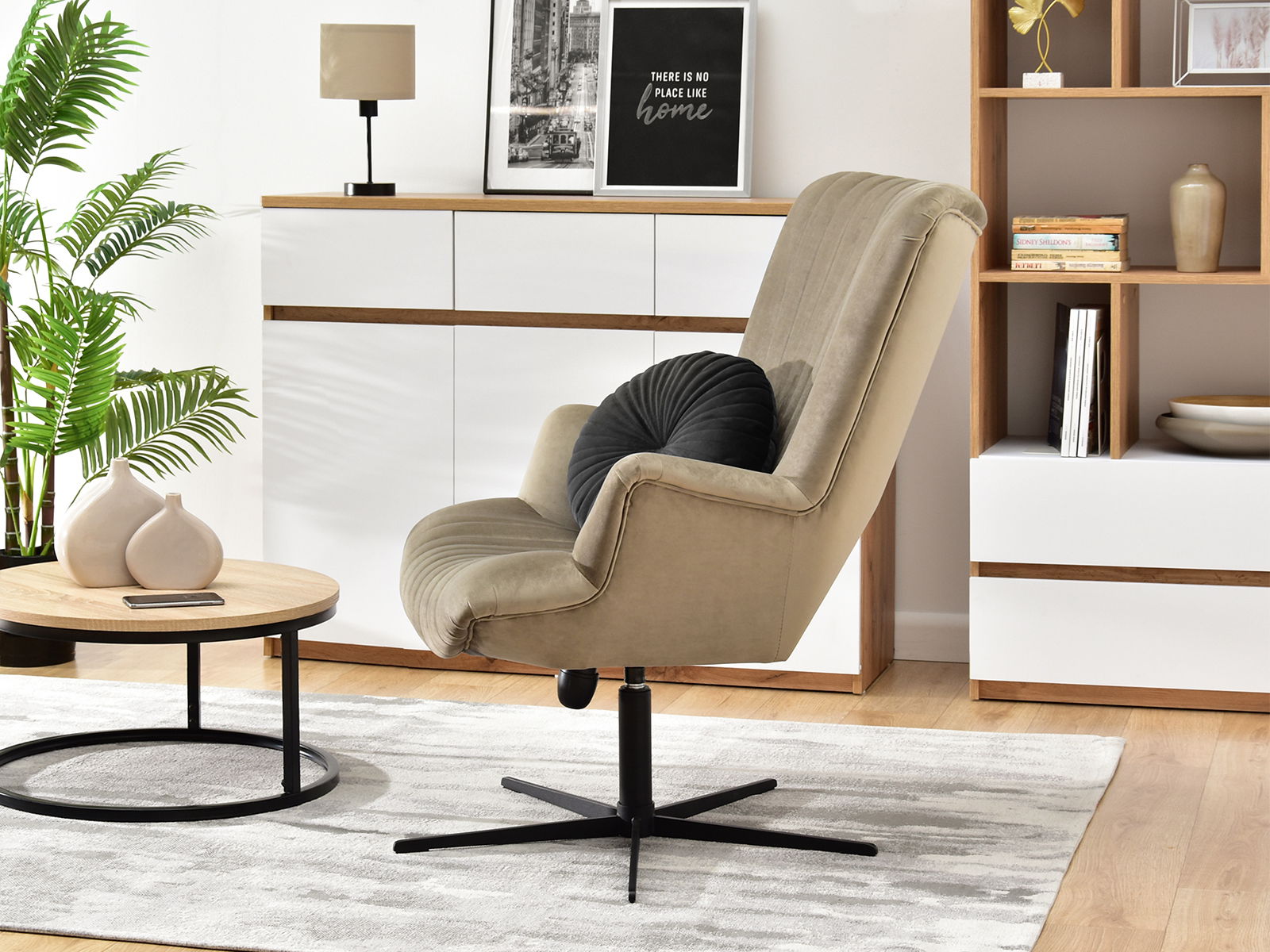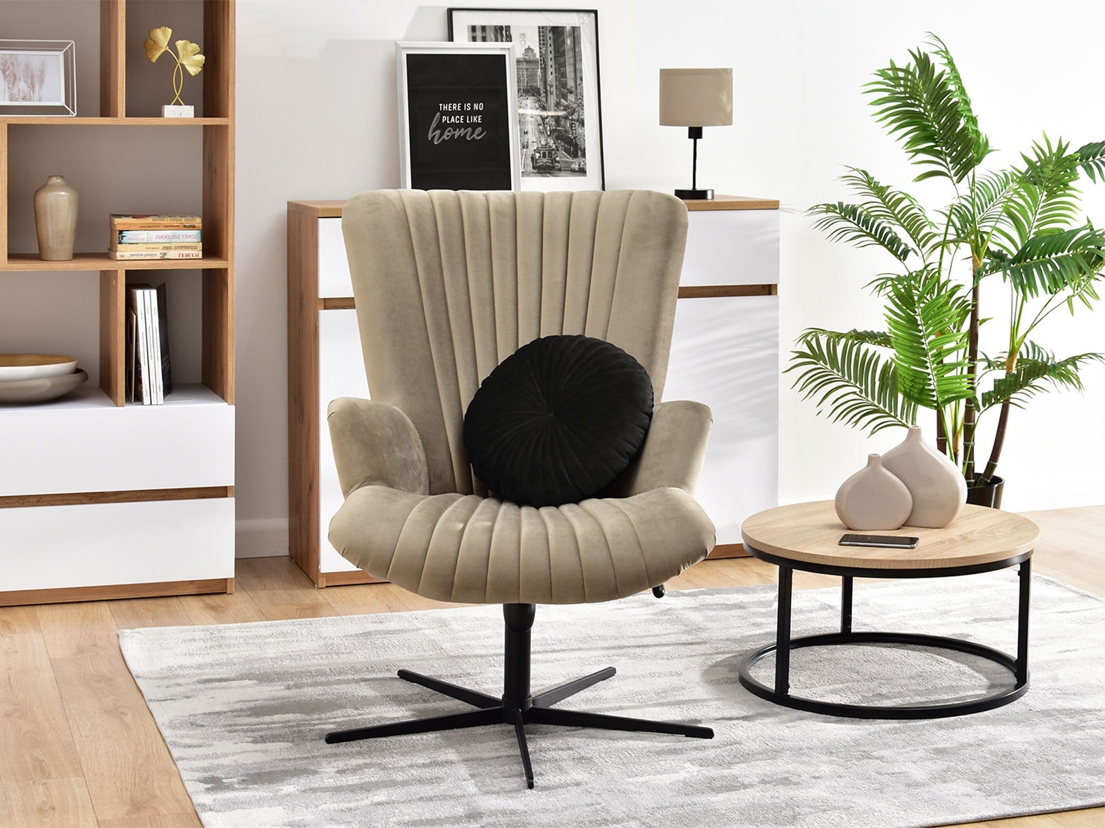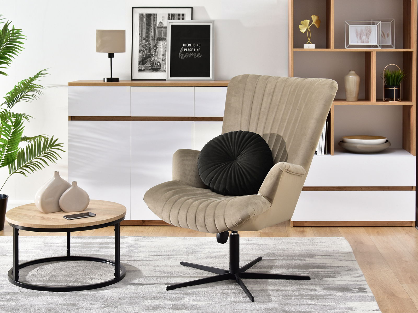 Relaxačné kreslo Elesenta (piesková + čierna)