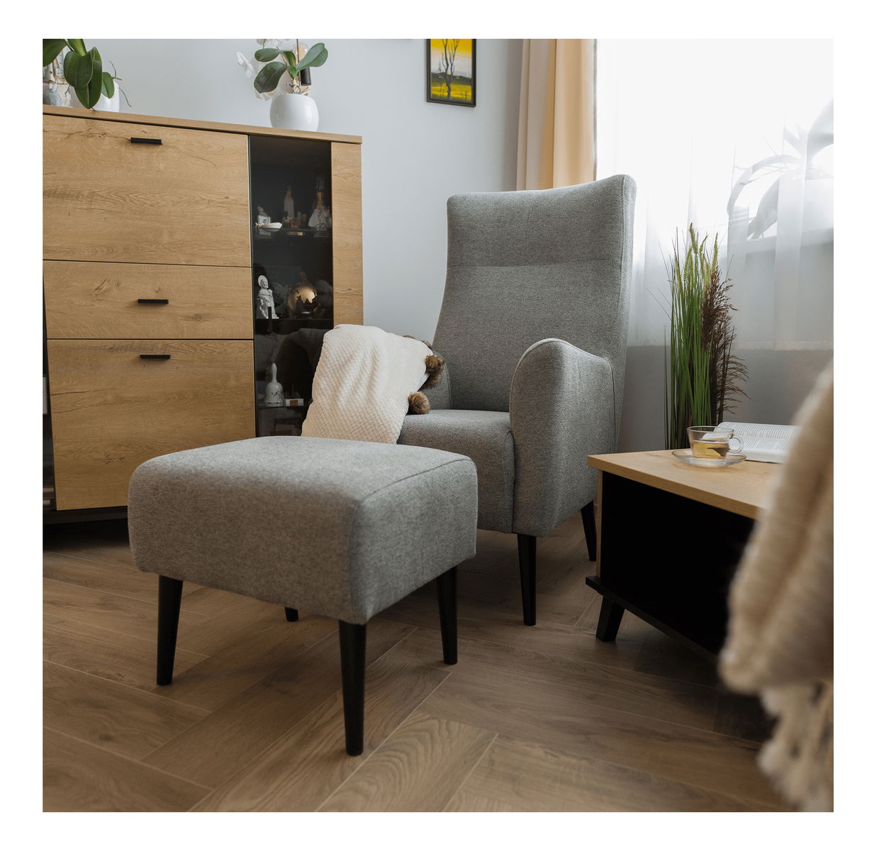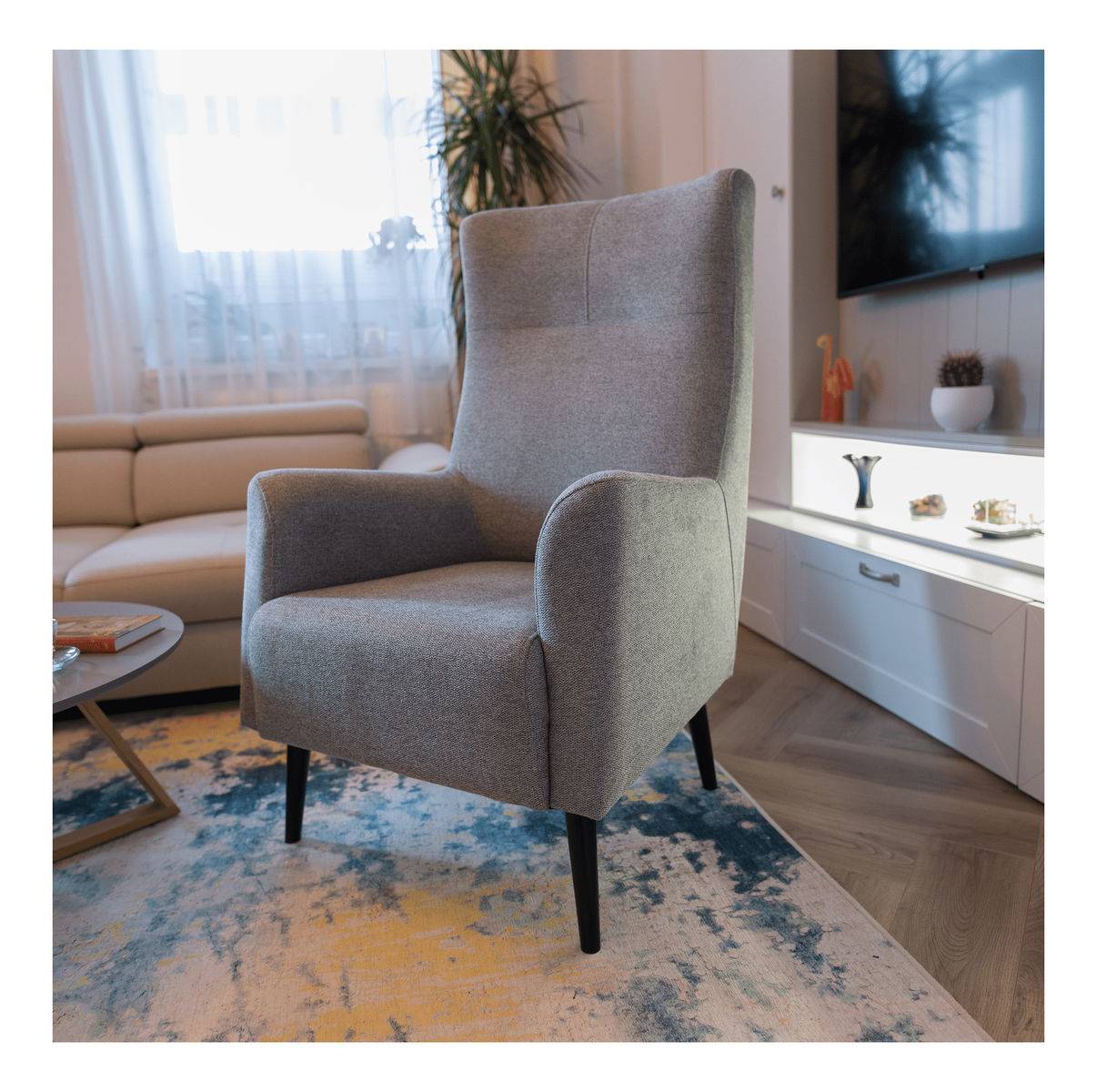 Relaxujte v náruči komfortného kresla Saif. Ušiaky zaraďujeme medzi pohodlné kreslá, pretože majú vysoké operadlo na chrbát, bočné opierky na hlavu, ale aj opierky na ruky. Dizajnové kreslo je celočalunené kvalitnou látkou Matana. Čierne drevené nohy poskytujú kreslu potrebnú pevnosť a stabilitu. Maximálnu spokojnosť pri sedení zaisťuje výplň sedáka, ktorá je kombináciou pružín Falista a peny T25.