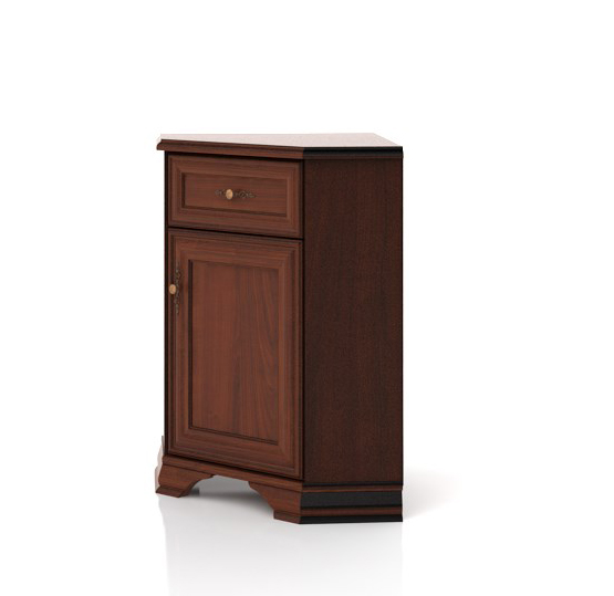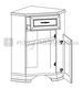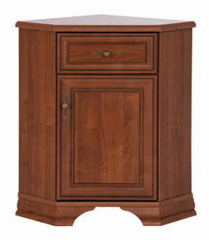 Rohová komoda s jednou zásuvkou a jednými dvierkami.