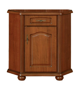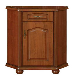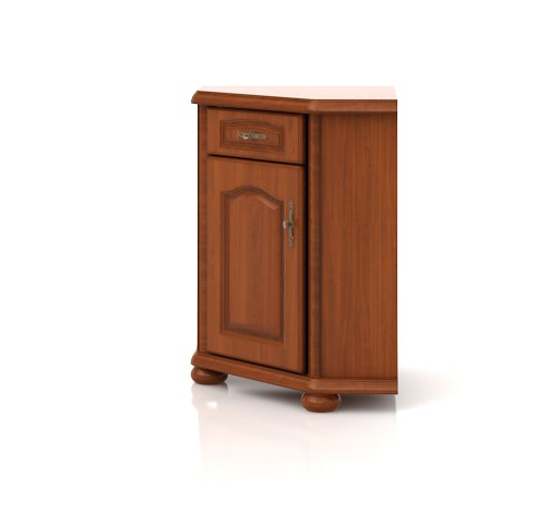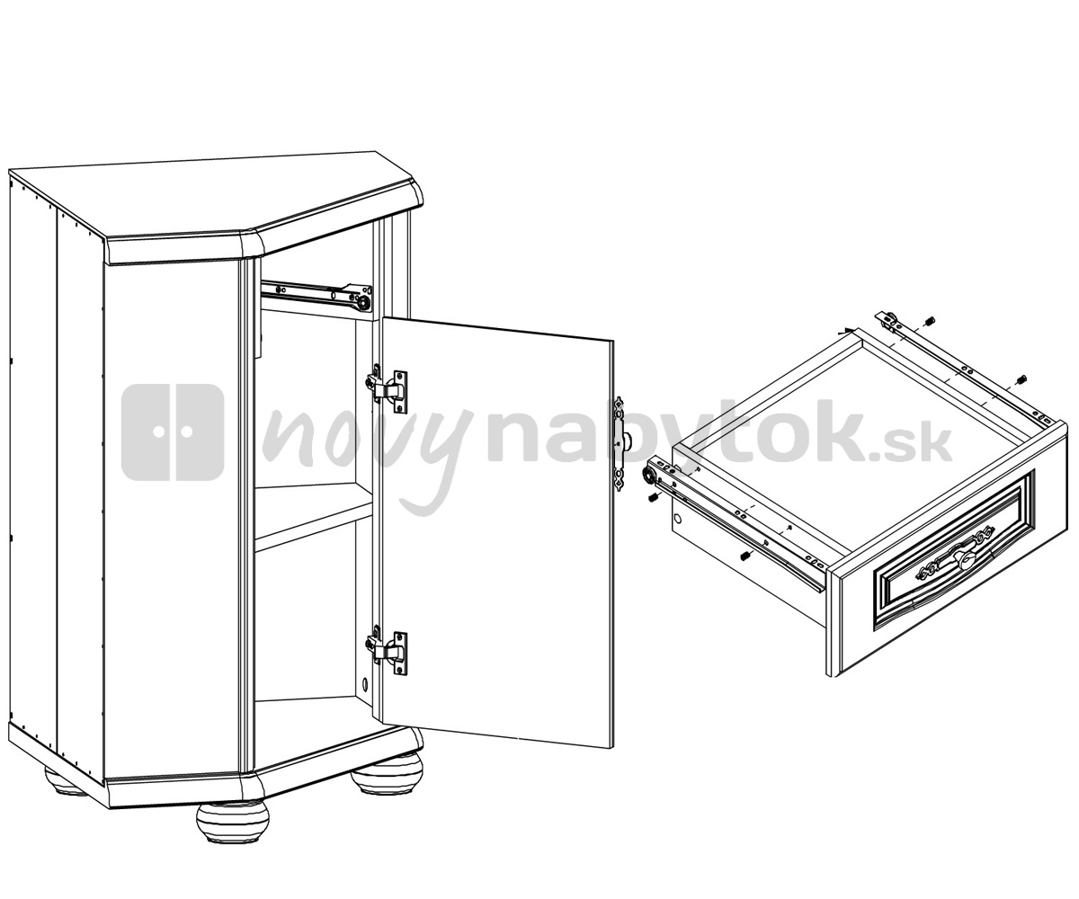 Ozdobná rohová komoda v prekrásnom rustikálnom štýle, ktorá skrášli vaše domácnosti a prinesie im príjemnú atmosféru. Vyrezávané fronty dvierok a zásuvky, ozdobné kovové úchyty a guľaté nožičky vystihujú rustikálny štýl tejto komody. Je vhodná do obývacích izieb, jedální alebo pracovní. Ľavé prevedenie komody.