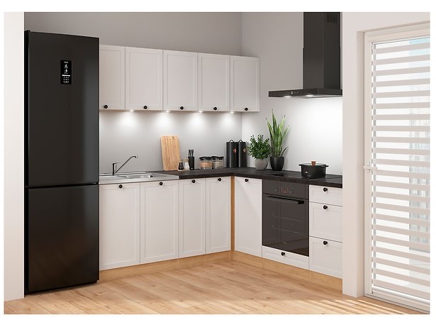 Rohová kuchyňa Junona Line je perfektným riešením pre ľudí, ktorí si cenia flexibilitu pri usporiadaní priestoru. Vďaka svojej všestrannosti môžete konštrukciu jednoducho prispôsobiť ľavému alebo pravému rohu v závislosti od vašich individuálnych potrieb a dispozičného riešenia miestnosti. Takáto kuchyňa nielen optimalizuje využitie dostupného priestoru, ale vytvára aj útulné a funkčné miesto na varenie a trávenie času s blízkymi. Kuchynská linka Junona Line je dokonale organizovaný priestor. Spodná časť ponúka všetko potrebné: praktické skrinky s dvierkami, priestrannú skrinku pod drez, miesto na rúru a funkčnú sadu troch zásuviek na kuchynské doplnky. Horné závesné skrinky vám poskytnú ďalší priestor na uloženie riadu a potravín. Elegantné, jednoduché úchytky zdôrazňujú minimalistický charakter nábytku. S radom Junona si vytvoríte kuchyňu, ktorá bude nielen krásna, ale predovšetkým praktická pri každodennom používaní.