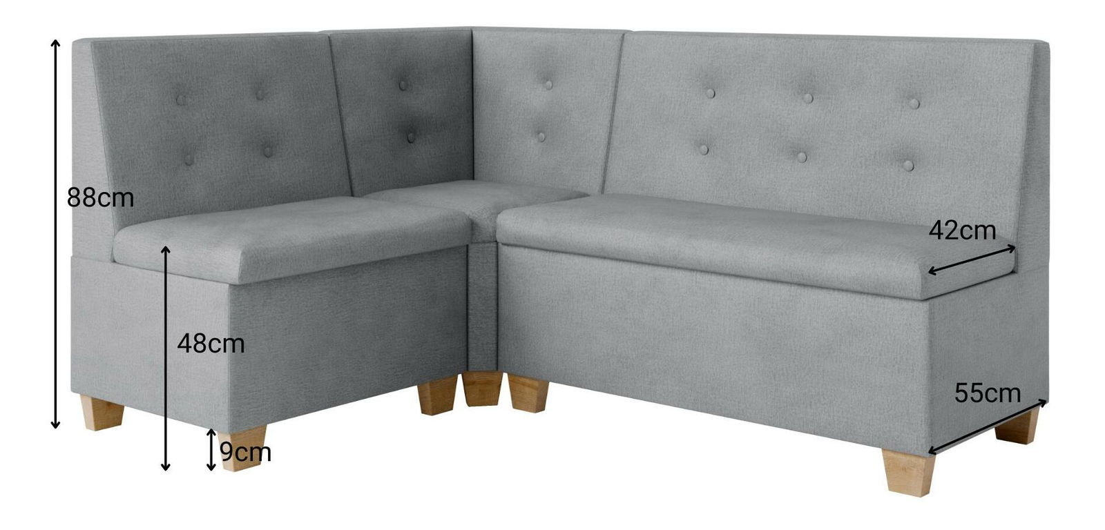 zabudované do bočných lavíc (rohový prvok bez úložného priestoru)