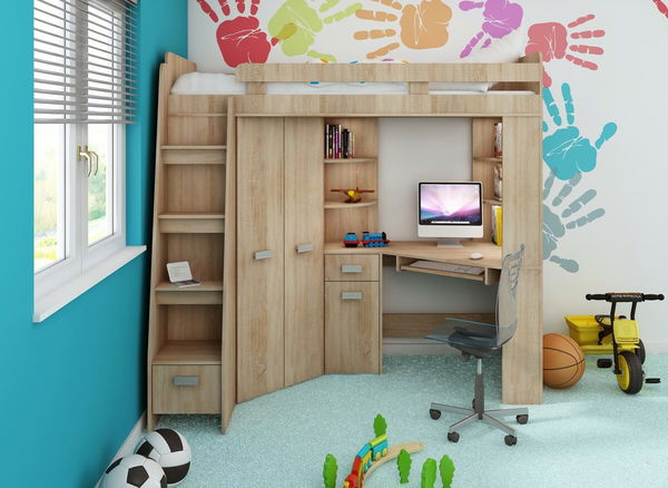 Fantastický a premyslený kus nábytku, ktorý Vaše dieťa bude milovať. Detské izby s malou plochou bývajú často preplnené nábytkom a dieťa sa nakoniec nemá kde hrať. Antresola chce riešiť tento problém s nedostatkom priestoru a ponúka 3 typy nábytky v jednom kompaktnom vyhotovení. Základ tvojí obrovský rohový šatník (4 rozmerné police a jedna vešiaková tyč), kde umiestnite všetky potrebné veci. K rohovému šatníku je pripojený rohový pc stolík s doskou na klávesnicu, skrinkou a zásuvkou na ľavej strane a 4 rohovými úložnými policami na nosných stĺpoch postele. Nad rohovým stolíkom je upevnená jednolôžková posteľ so zábranou proti vypadnutiu. Do postele nie je potrebné dokúpiť rošt. Namiesto roštu má posteľ dosku, na ktorú sa položí matrac. Odporúčame dokúpiť matrac s rozmerom matraca 200 cm hĺbka a 80 cm šírka, odporúčaná výška matraca (hrúbka) by mala byť 10 cm, inak stratí bariéra proti vypadnutiu svoj zmysel. K posteli sa vystupuje po pomerne vysokých štyroch schodoch (hrubé 1,6 cm) z ktorých spodný schod má pod sebou úložný priestor. Tieto schody sú pripevnené k šatníku z opačnej strany - oproti PC stolíku. Skriňa je vybavená masívnymi úchytmi na dvierkach a zásuvkách. Ľavé prevedenie - rohový šatník a schodíky k posteli sú na strane ľavej. Nosnosť 80 kg.