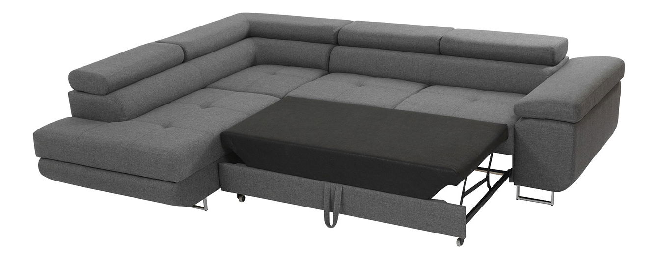 obdĺžnikovému konferenčnému stolíku. Toto harmonické duo je ideálne do hosťovskej izby. Poskytuje veľa priestoru na sedenie a vytvára ideálne podmienky pre stretnutie s priateľmi. Premyslený dizajn a doplnky sú zodpovedné za zvýšenú kvalitu odpočinku. Polohovateľné opierky hlavy patria budú obľúbené u celej rodiny. Dajú sa prispôsobiť tvaru tela dieťaťa, ale aj dospelého. Výhodou nábytku je aj rozkladacia funkcia. V rozloženom stave poskytuje komfortné podmienky pre každodenný spánok. Priestranný úložný priestor na posteľnú bielizeň rieši starosti s ukladaním vankúšov a perín. Pomôže vám s udržiavaním poriadku v obývačke a poskytuje aj ďalší priestor pre sezónne oblečenie a iné zriedkavo používané veci.