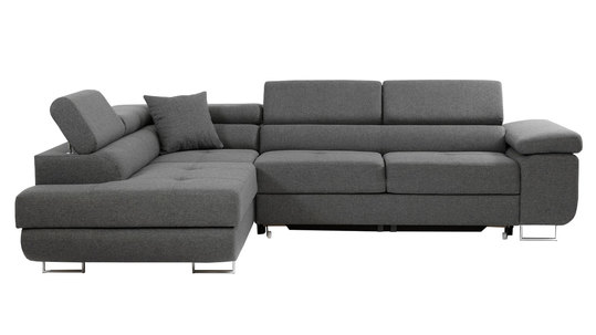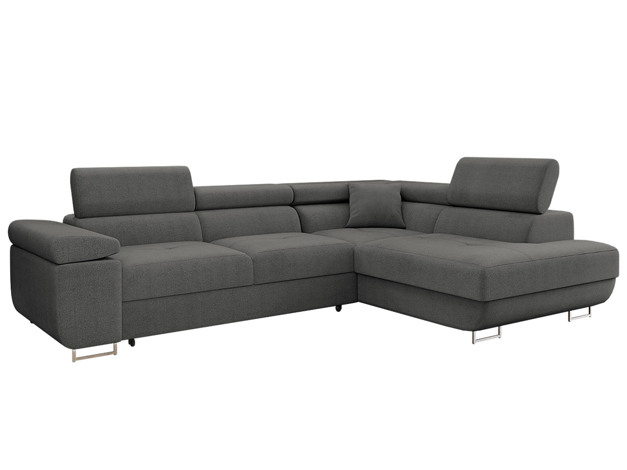 Moderný vzhľad rohovej rozkladacej pohovky Torezio zvýrazní skvelý štýl zariadenia vašej obývačky. Farby čalúnenia rohovej sedačky dokonale ladia s akoukoľvek dekoráciou steny a vzorom podlahy. Módne odtiene čalúnenia v kombinácii s chrómovými nohami navyše zdôrazňujú charakter interiéru a ostatných kusov nábytku. Pohovka v tvare písmena L výborne pasuje k okrúhlemu konferenčnému stolíku, ako aj k obdĺžnikovému konferenčnému stolíku. Toto harmonické duo je ideálne do hosťovskej izby. Poskytuje veľa priestoru na sedenie a vytvára ideálne podmienky pre stretnutie s priateľmi. Premyslený dizajn a doplnky sú zodpovedné za zvýšenú kvalitu odpočinku. Polohovateľné opierky hlavy patria budú obľúbené u celej rodiny. Dajú sa prispôsobiť tvaru tela dieťaťa, ale aj dospelého. Výhodou nábytku je aj rozkladacia funkcia. V rozloženom stave poskytuje komfortné podmienky pre každodenný spánok. Priestranný úložný priestor na posteľnú bielizeň rieši starosti s ukladaním vankúšov a perín. Pomôže vám s udržiavaním poriadku v obývačke a poskytuje aj ďalší priestor pre sezónne oblečenie a iné zriedkavo používané veci.