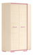 Rohová šatníková skriňa s dvomi vešiakovými tyčami a poličkami po stranách.