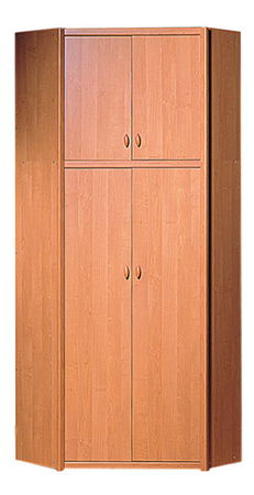 Vysoká, jednoduchá zostava s hlbokými bielizníkmi a skriňou, umožňujúcou využiť celú výšku vnútra. Rohové prvky: vonkajší (regál) a vnútorný (skriňa). 15 prvkov v 2 farbách: jelša a orech.