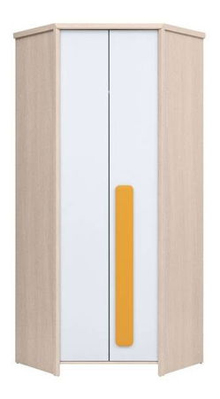 Rohová šatníková skriňa BRW Colorado SZFN2D (dub svetlý belluno + biela + pomarančová)