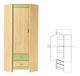 Rohová šatníková skriňa Codi CD/10 s vešiakovou tyčou na pravej strane a tromi poličkami na ľavej strane a s dvomi samostatnými zásuvkami. Nábytok z modelovej rady Codi, novinka na rok 2011 od výrobcu Bog Fran