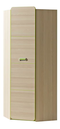 Rohová šatníková skriňa Lavendon L14 (zelená) s výškou 188 cm a hĺbkou 71 cm je ideálnou voľbou pre tých, ktorí si chcú užiť množstvo úložného priestoru na svoje oblečenie a doplnky. Skriňa má jednoduchý, no moderný dizajn, ktorý je doplnený o ozdobný farebný okraj. Táto šatníková skriňa je skvelou voľbou na zariadenie študentskej alebo detskej izby. Modelový rad Lavendon je navrhnutý tak, aby bol prispôsobený aktívnemu životnému štýlu detí a tínedžerov. Skrinky, komody, regály, PC stolíky, poličky a pohodlné postele sú navrhnuté v sviežom modernom dizajne s jaseňom coimbra v kombinácii so žiarivými farebnými prvkami na dvierkach a ozdobnými farebnými okrajmi. Dizajnovým prvkom sú vyčnievajúce dvierka s zaoblenými rohmi. Veselý dizajn vytvorí v detskej alebo študentskej izbe príjemnú atmosféru.