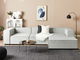 Vylepšite svoju obývaciu izbu pomocou tejto modernej sedacej súpravy. Vďaka svojej neutrálnej farbe, jednoduchosti a elegancii skvele zapadne do moderných aj tradičných interiérov. Je čalúnená vysokokvalitnou a odolnou látkou z polyesterového ľanu, má drevenú konštrukciu a nohy zo syntetického materiálu, takže si nevyžaduje žiadnu špeciálnu starostlivosť, aby vám slúžila dlhé roky. Skombinujte ju s iným nábytkom z rovnakej kolekcie alebo ju použite ako samostatný prvok a vychutnajte si dokonalé pohodlie.