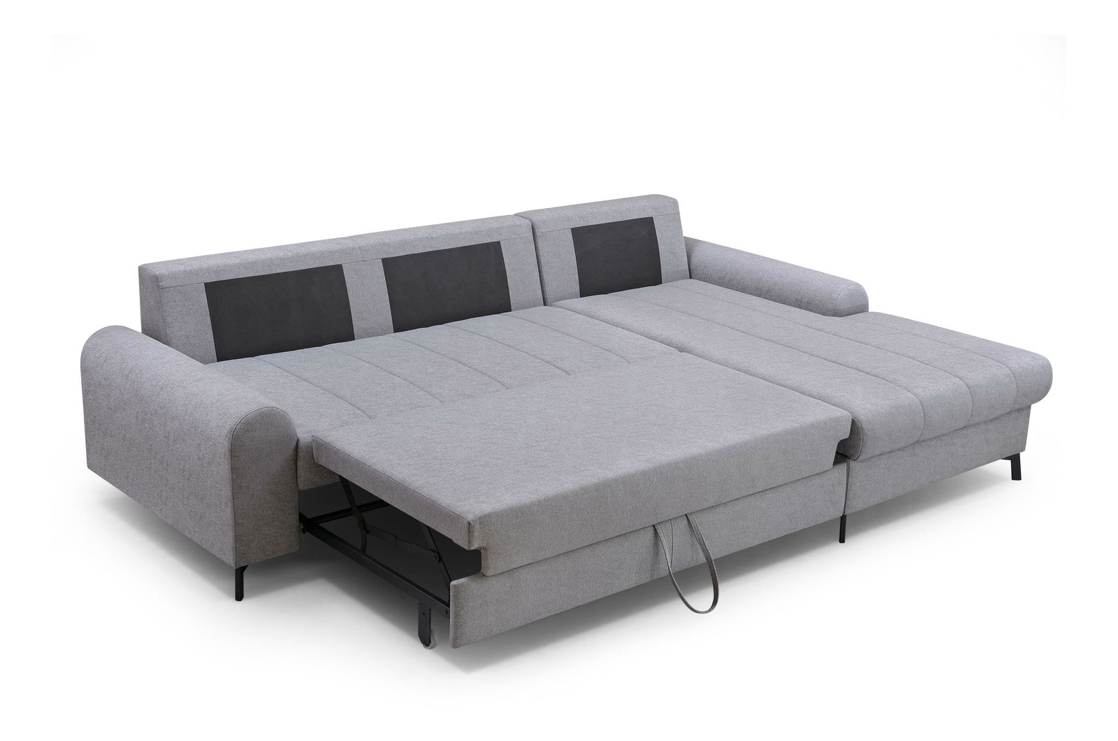 ZobraziťTáto rohová sedačka je ideálnou voľbou pre každého, kto hľadá kombináciu pohodlia a praktickosti. Jej konštrukcia je vyrobená z dreva a drevotriesky, čo zabezpečuje pevnosť a dlhú životnosť. Sedák je vyplnený PUR penou a pružinami, čo poskytuje maximálny komfort pri sedení. Sedačka je rozkladacia, ponúka plochu na spanie o rozmeroch 140 x 212 cm, ideálnu pre hostí. Výška sedenia je 41 cm a hĺbka sedenia 54 cm, čo prispieva k pohodlnému sedeniu. Podrúčky majú výšku 56 cm, čo poskytuje oporu pre ruky. Sedačka má tiež úložný priestor, ktorý je praktický na uschovanie rôznych predmetov. Chrbát sedačky je potiahnutý rovnakou látkou, čo dodáva celkovému vzhľadu jednotnosť a estetickosť. Sedačka nemá nastaviteľné opierky hlavy ani podrúčky, čo však neuberá na jej komforte. Nožičky sú vyrobené z kombinácie kovu a plastu, čo zabezpečuje stabilitu a moderný vzhľad. Typ rozkladania je vozík, čo uľahčuje manipuláciu pri rozkladaní sedačky.