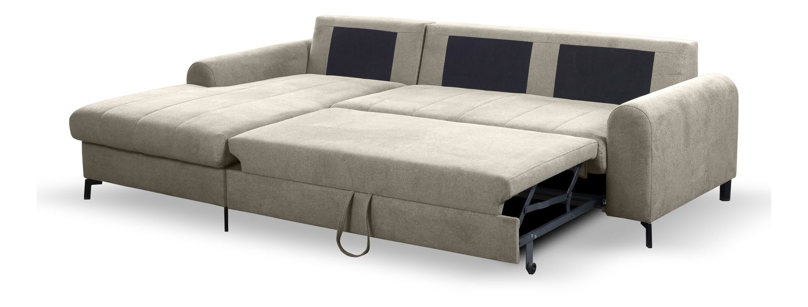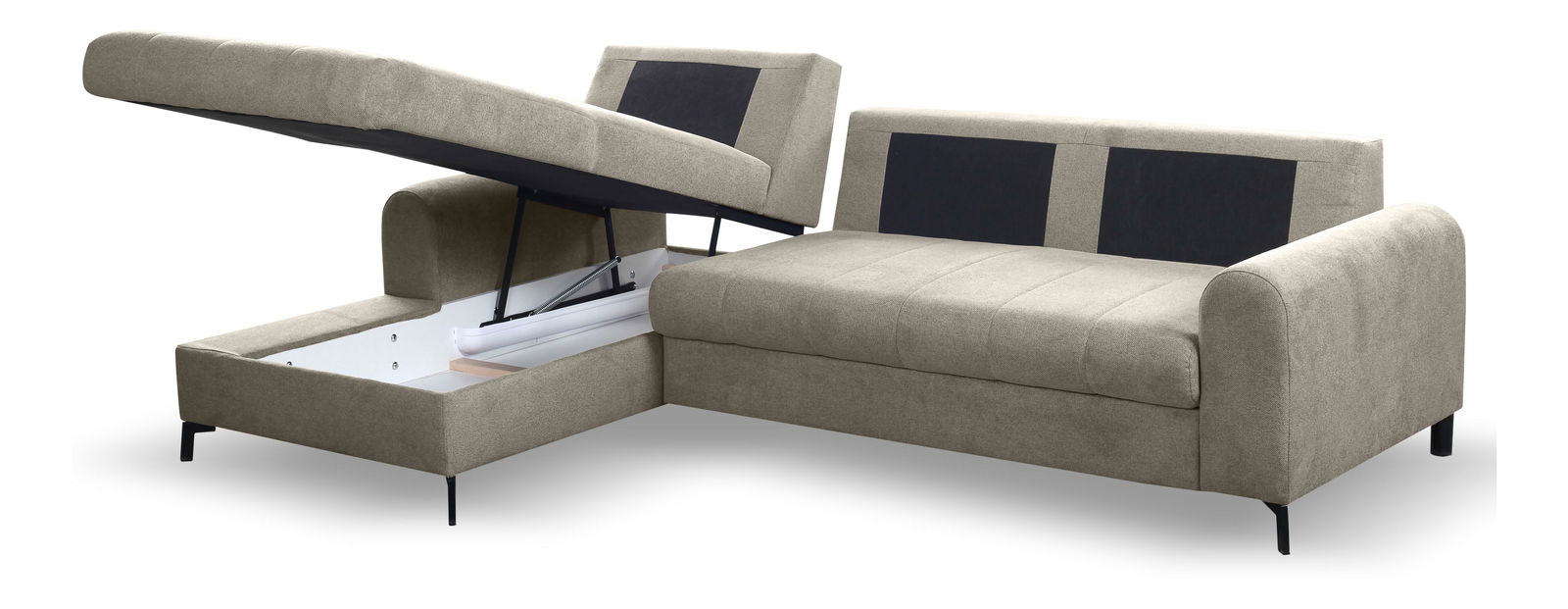 ZobraziťTáto rohová sedačka je ideálnou voľbou pre každého, kto hľadá kombináciu pohodlia a praktickosti. Jej konštrukcia je vyrobená z dreva a drevotriesky, čo zabezpečuje pevnosť a dlhú životnosť. Sedák je vyplnený PUR penou a pružinami, čo poskytuje maximálny komfort pri sedení. Sedačka je rozkladacia, ponúka plochu na spanie o rozmeroch 140 x 212 cm, ideálnu pre hostí. Výška sedenia je 41 cm a hĺbka sedenia 54 cm, čo prispieva k pohodlnému sedeniu. Podrúčky majú výšku 56 cm, čo poskytuje oporu pre ruky. Sedačka má tiež úložný priestor, ktorý je praktický na uschovanie rôznych predmetov. Chrbát sedačky je potiahnutý rovnakou látkou, čo dodáva celkovému vzhľadu jednotnosť a estetickosť. Sedačka nemá nastaviteľné opierky hlavy ani podrúčky, čo však neuberá na jej komforte. Nožičky sú vyrobené z kombinácie kovu a plastu, čo zabezpečuje stabilitu a moderný vzhľad. Typ rozkladania je vozík, čo uľahčuje manipuláciu pri rozkladaní sedačky.
