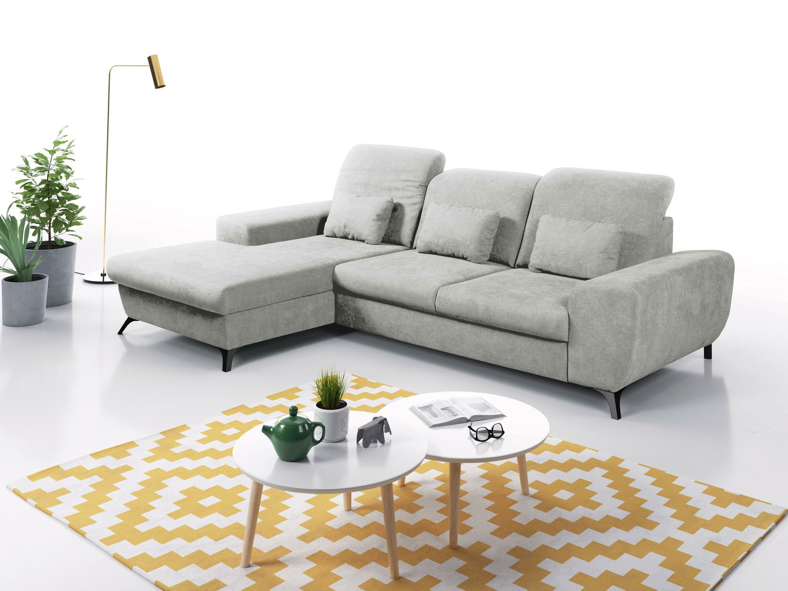 ZobraziťTáto rohová sedačka je dokonalou kombináciou štýlu a funkčnosti. Jej konštrukcia je vyrobená z dreva a drevotriesky, čo zaručuje pevnosť a dlhú životnosť. Sedák je tvorený PUR penou a pružinami, čo poskytuje maximálny komfort pri sedení. Sedačka je rozkladacia, čím ponúka plochu na spanie o rozmeroch 130 x 208 cm, a jej výška sedenia je 42 cm s hĺbkou sedenia 64 cm a výškou podrúčok 55 cm. Disponuje tiež úložným priestorom, ideálnym na uschovanie rôznych predmetov. Chrbát je potiahnutý rovnakou látkou, čo dodáva sedačke elegantný vzhľad zo všetkých strán. Nastaviteľné opierky hlavy pridávajú na pohodlí. Nožičky sú vyrobené z kovu a plastu, čo zabezpečuje stabilitu a moderný dizajn. Tkanina Avra s povrchovou úpravou WATER BLOCKED bráni vstrebávaniu tekutín, čo umožňuje jednoduché odstránenie rozliatej kávy, čaju alebo vína pomocou handričky alebo papierového uteráka. Tkanina má certifikáty „Bezpečné pre dojčatá“, „Bezpečné pre deti“ a „Vhodné pre ľudí“, spĺňa prísne normy výroby pre deti a má certifikát „OEKO-TEX Standard 100“. Odolnosť tkaniny je potvrdená 50 000 cyklami Martindale. Sedačka sa dodáva v dvoch balíkoch.
