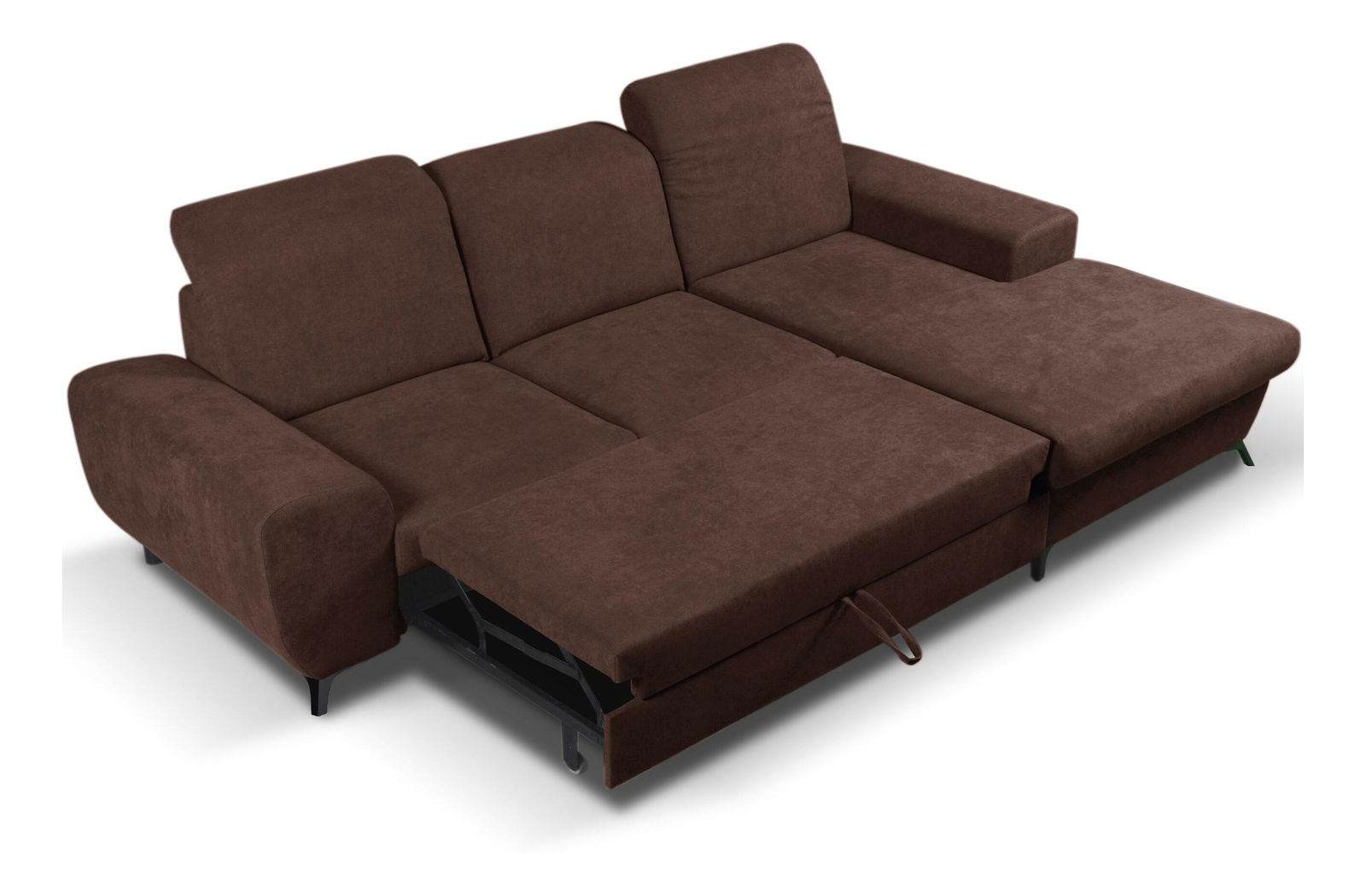 ZobraziťTáto rohová sedačka je dokonalou kombináciou štýlu a funkčnosti. Jej konštrukcia je vyrobená z dreva a drevotriesky, čo zaručuje pevnosť a dlhú životnosť. Sedák je tvorený PUR penou a pružinami, čo poskytuje maximálny komfort pri sedení. Sedačka je rozkladacia, čím ponúka plochu na spanie o rozmeroch 130 x 208 cm, a jej výška sedenia je 42 cm s hĺbkou sedenia 64 cm a výškou podrúčok 55 cm. Disponuje tiež úložným priestorom, ideálnym na uschovanie rôznych predmetov. Chrbát je potiahnutý rovnakou látkou, čo dodáva sedačke elegantný vzhľad zo všetkých strán. Nastaviteľné opierky hlavy pridávajú na pohodlí. Nožičky sú vyrobené z kovu a plastu, čo zabezpečuje stabilitu a moderný dizajn. Tkanina Avra s povrchovou úpravou WATER BLOCKED bráni vstrebávaniu tekutín, čo umožňuje jednoduché odstránenie rozliatej kávy, čaju alebo vína pomocou handričky alebo papierového uteráka. Tkanina má certifikáty „Bezpečné pre dojčatá“, „Bezpečné pre deti“ a „Vhodné pre ľudí“, spĺňa prísne normy výroby pre deti a má certifikát „OEKO-TEX Standard 100“. Odolnosť tkaniny je potvrdená 50 000 cyklami Martindale. Sedačka sa dodáva v dvoch balíkoch.