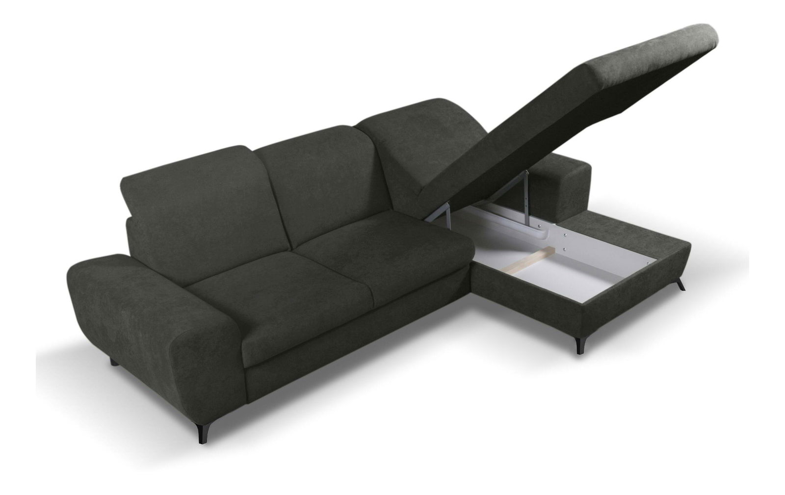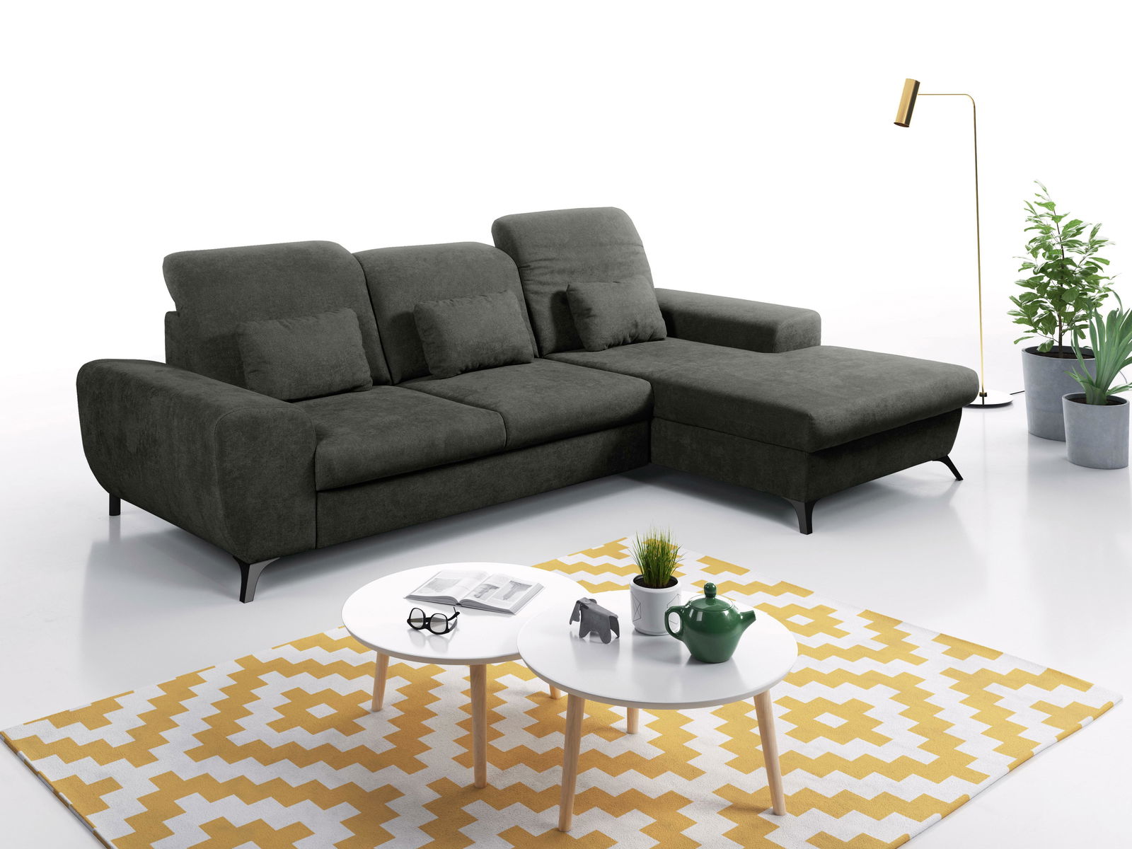 ZobraziťTáto rohová sedačka je dokonalou kombináciou štýlu a funkčnosti. Jej konštrukcia je vyrobená z dreva a drevotriesky, čo zaručuje pevnosť a dlhú životnosť. Sedák je tvorený PUR penou a pružinami, čo poskytuje maximálny komfort pri sedení. Sedačka je rozkladacia, čím ponúka plochu na spanie o rozmeroch 130 x 208 cm, a jej výška sedenia je 42 cm s hĺbkou sedenia 64 cm a výškou podrúčok 55 cm. Disponuje tiež úložným priestorom, ideálnym na uschovanie rôznych predmetov. Chrbát je potiahnutý rovnakou látkou, čo dodáva sedačke elegantný vzhľad zo všetkých strán. Nastaviteľné opierky hlavy pridávajú na pohodlí. Nožičky sú vyrobené z kovu a plastu, čo zabezpečuje stabilitu a moderný dizajn. Tkanina Avra s povrchovou úpravou WATER BLOCKED bráni vstrebávaniu tekutín, čo umožňuje jednoduché odstránenie rozliatej kávy, čaju alebo vína pomocou handričky alebo papierového uteráka. Tkanina má certifikáty „Bezpečné pre dojčatá“, „Bezpečné pre deti“ a „Vhodné pre ľudí“, spĺňa prísne normy výroby pre deti a má certifikát „OEKO-TEX Standard 100“. Odolnosť tkaniny je potvrdená 50 000 cyklami Martindale. Sedačka sa dodáva v dvoch balíkoch.